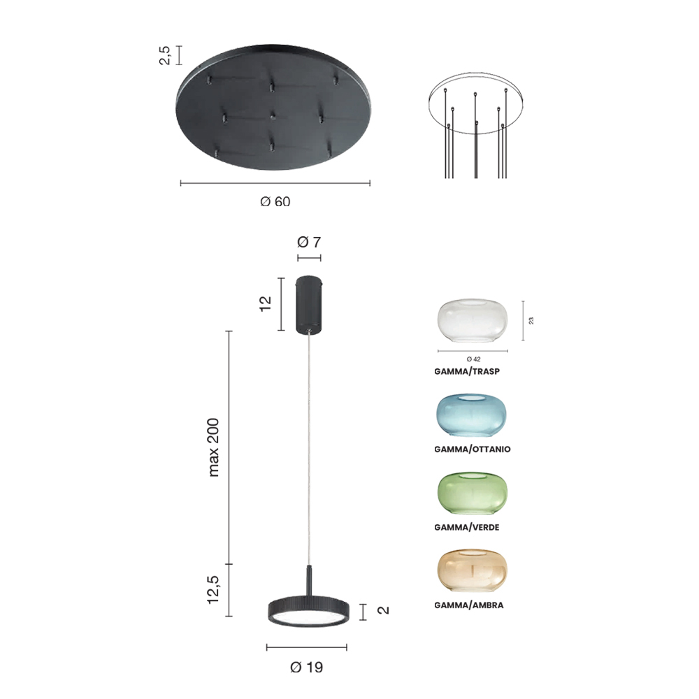 Dimensioner:- bund i loft: diameter 60cm x højde 2,5cm