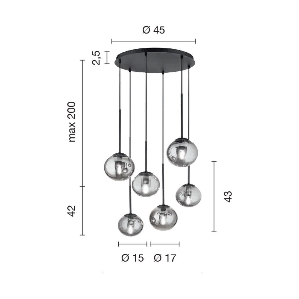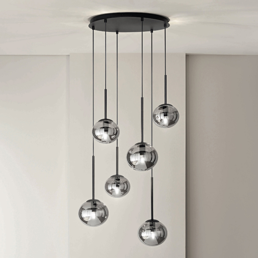 Lysekrone med LED lys i malet metal og blæst glas Made in Italy