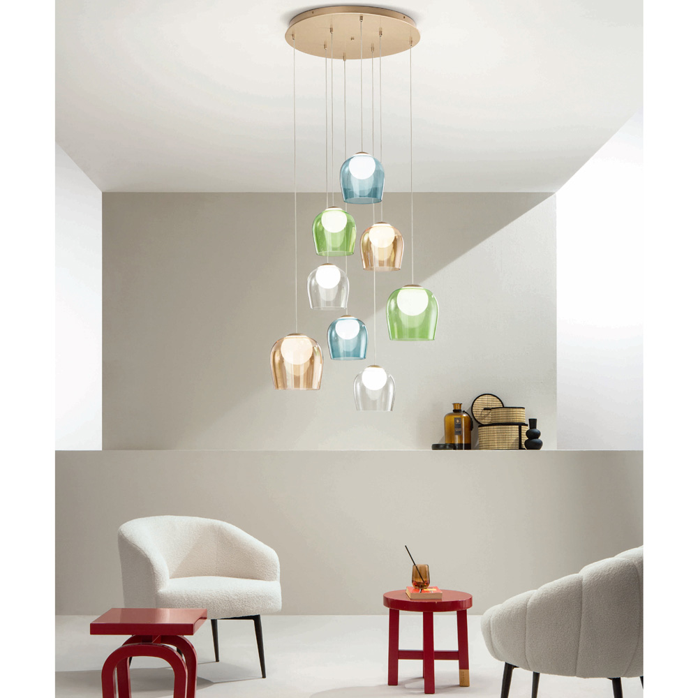 Lysekrone med LED lys i malet metal med valgfri glasskærm Made in Italy