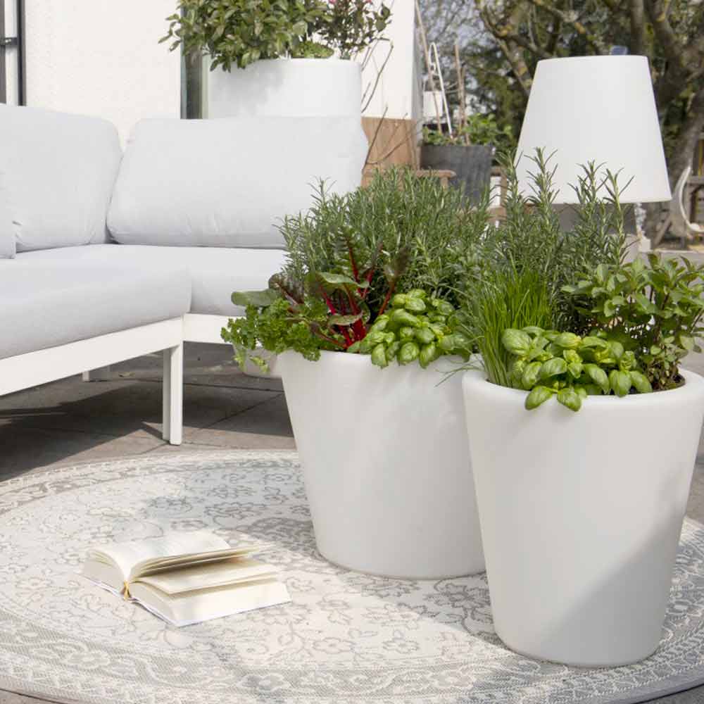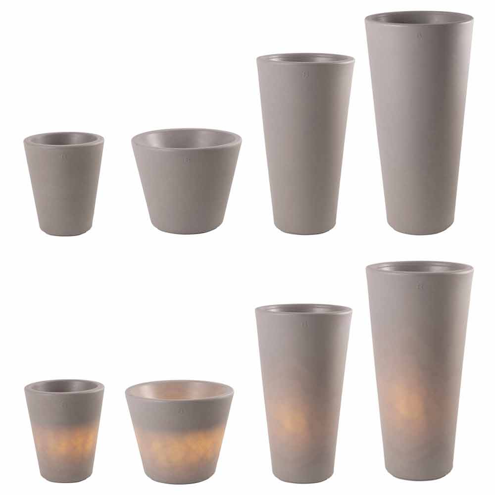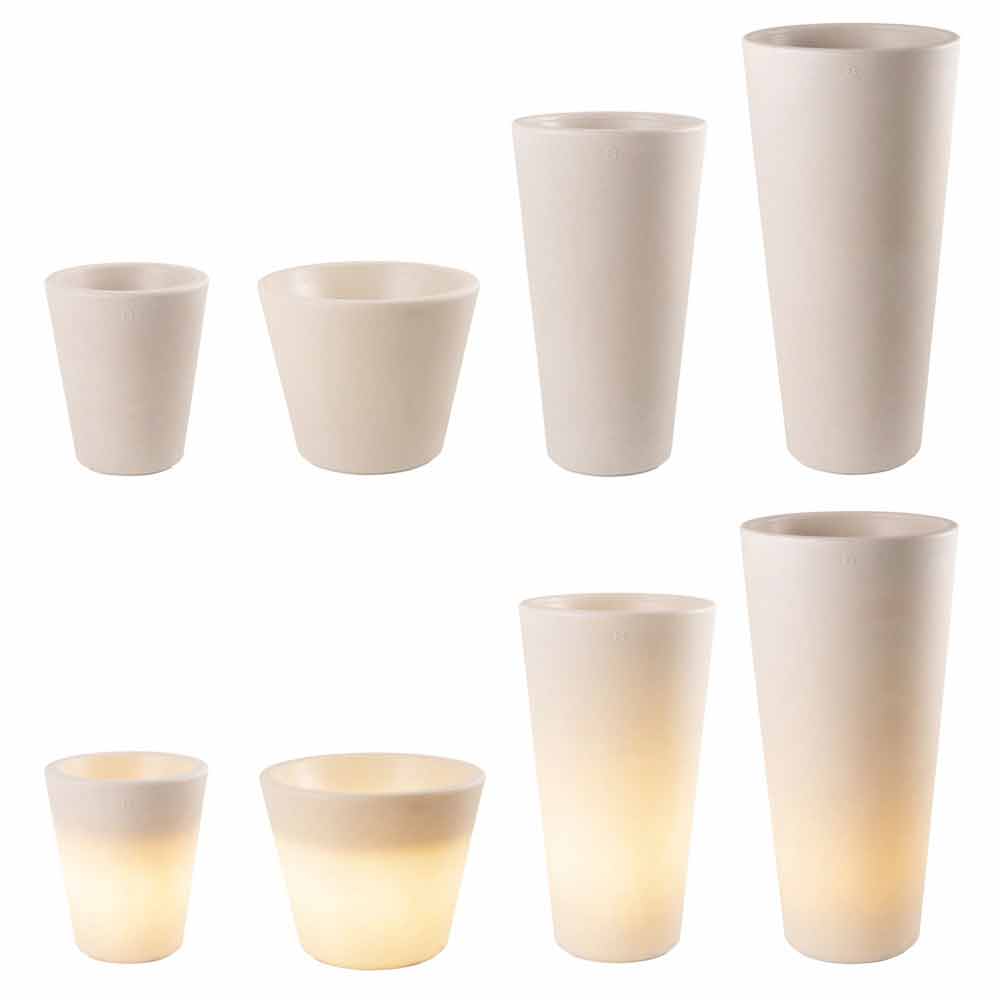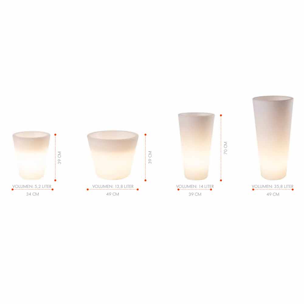 Lys vase til interiør eller eksteriør i farverigt og moderne design med E27-forbindelse i forskellige størrelser.