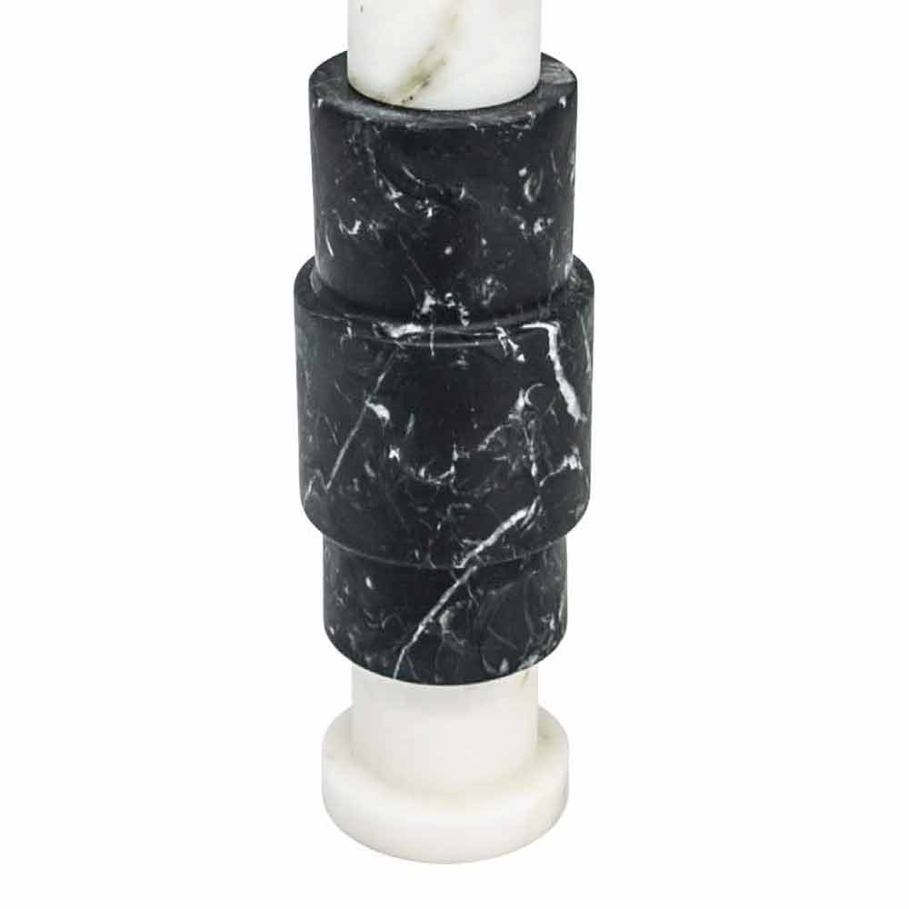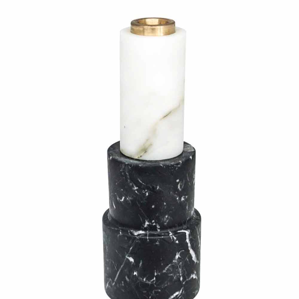 Højt design tofarvet lysestage i hvid Carrara marmor, sort Marquinia marmor og messing Made in Italy.