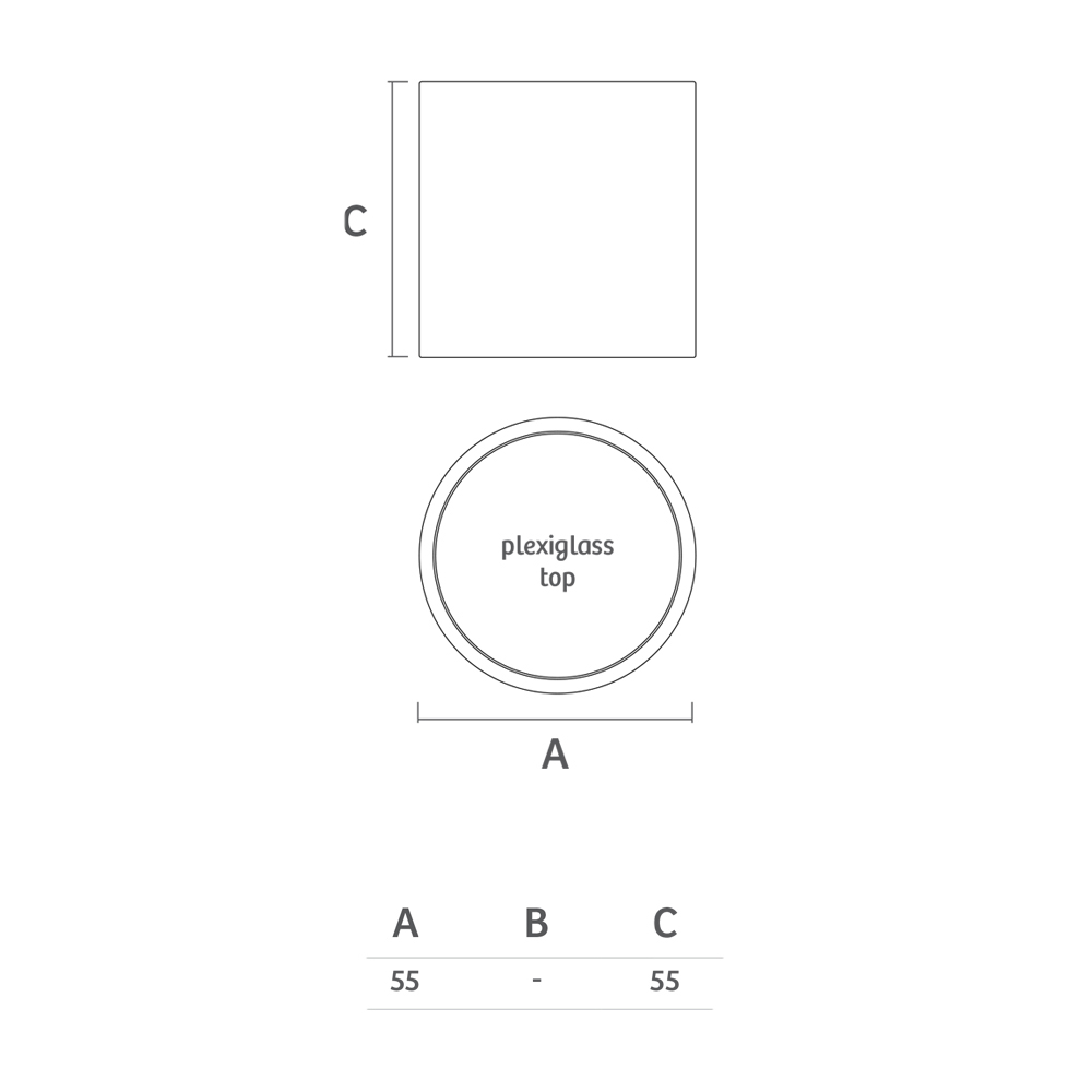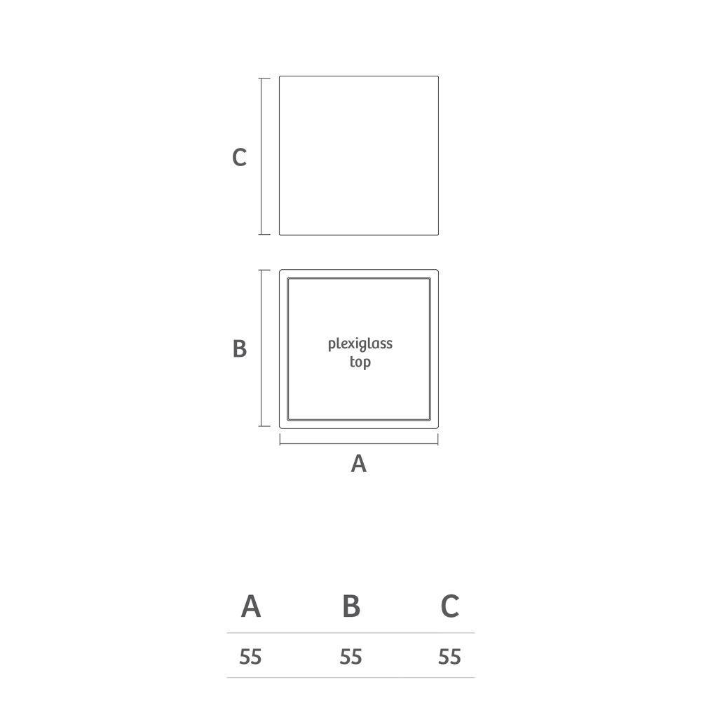 Tilgængelige størrelser:- L 55 x D 55 x H 55 cm - terning;