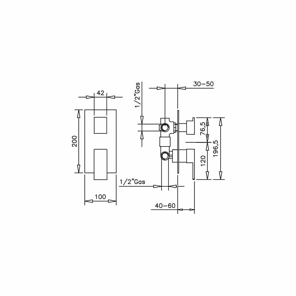 Brusearmatur med 3-vejs omskifter Made in Italy.