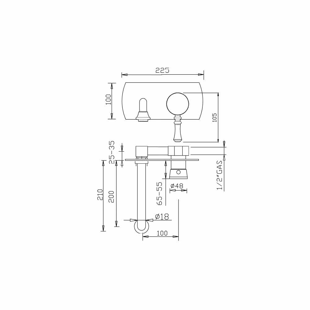 Vægmonteret håndvaskarmatur komplet med indbygningsdel og udvendige dele, med enkeltplade. Uden udstødning.