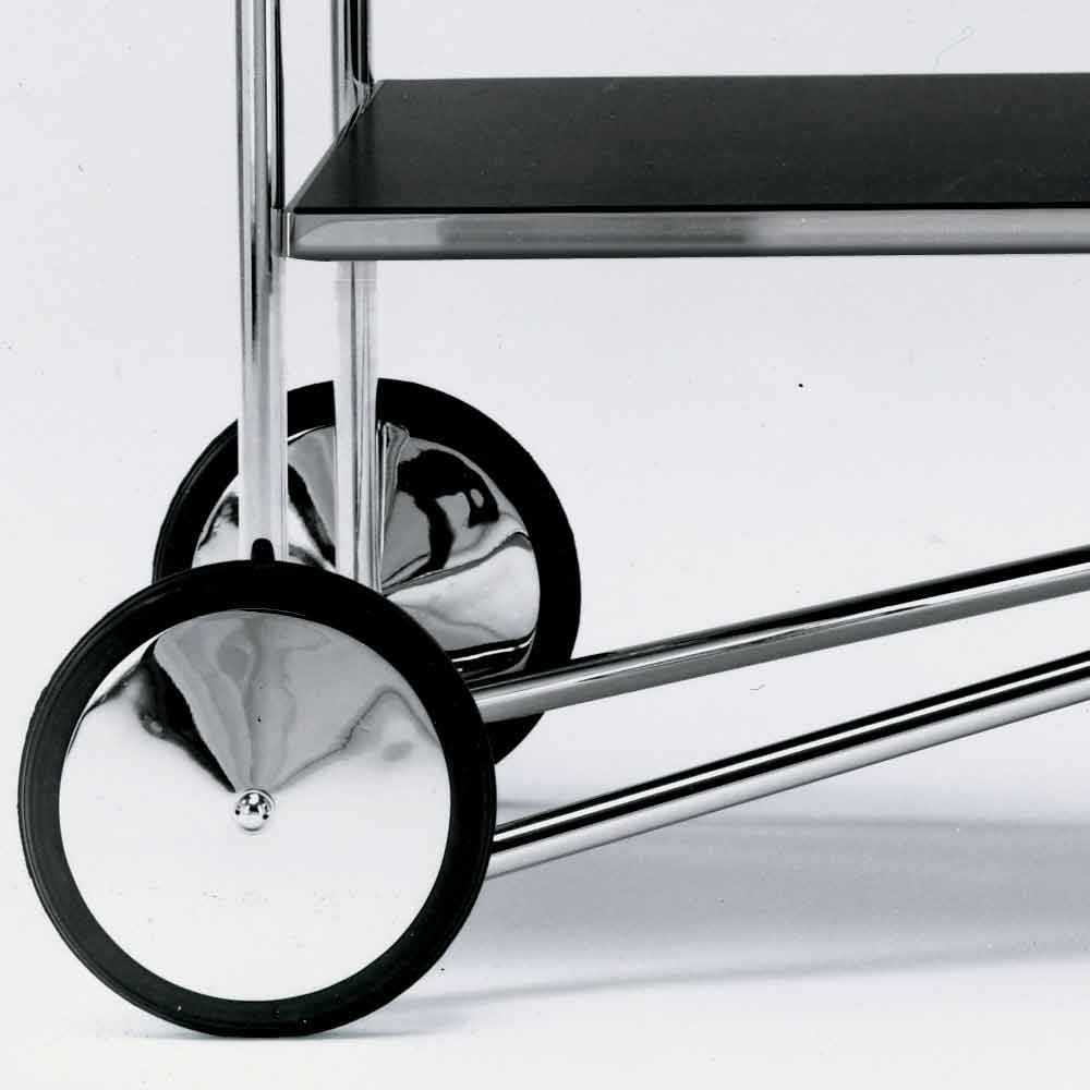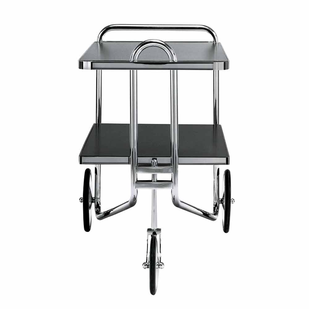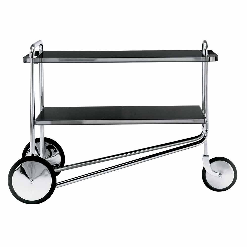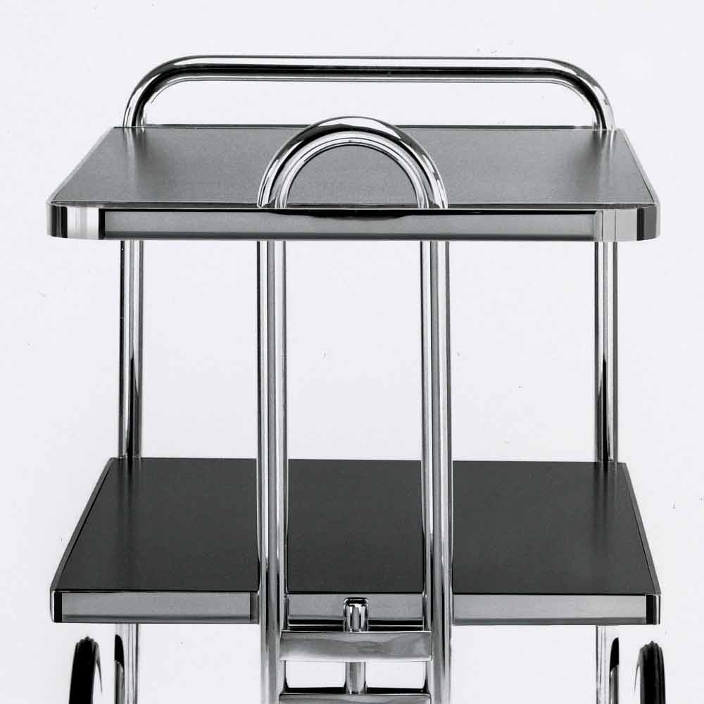 Madvogn i forkromet stål med sorte laminathylder Fremstillet i Italien.