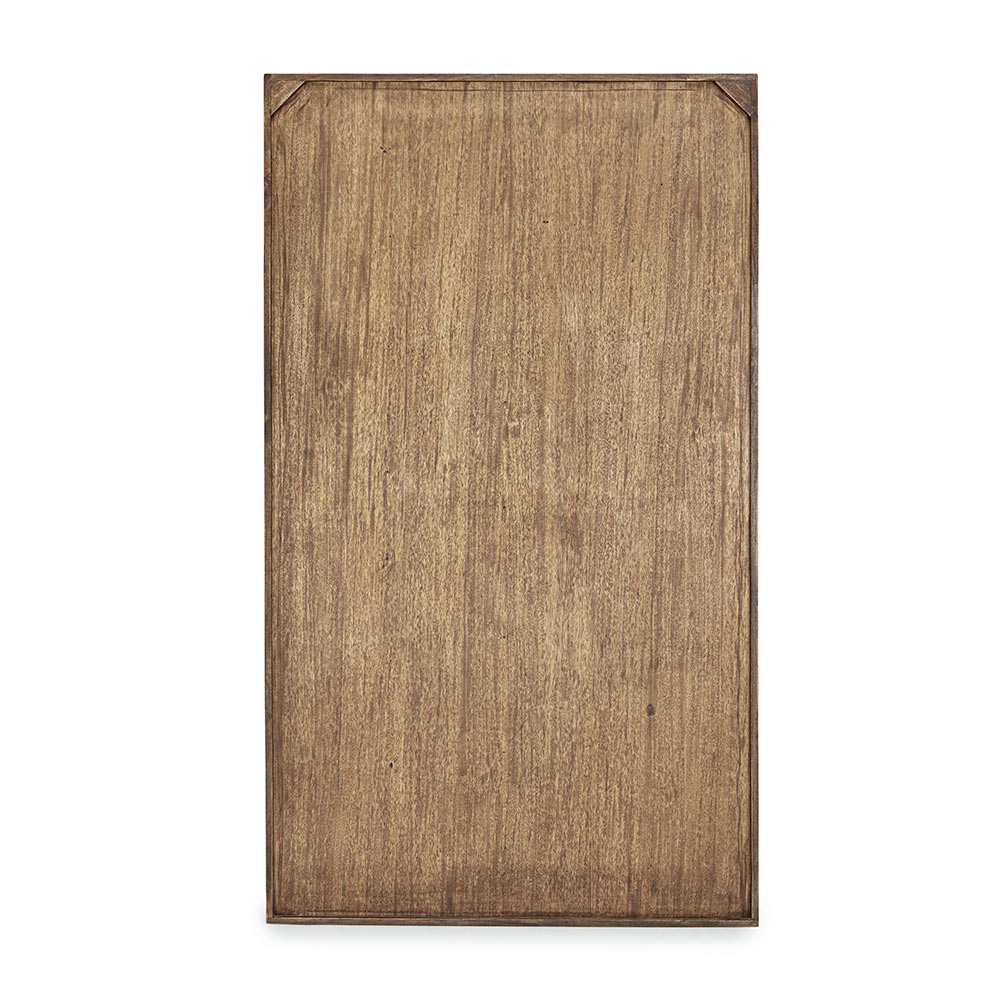 Reol i mangotræ med genbrugslåger og stålhåndtag.