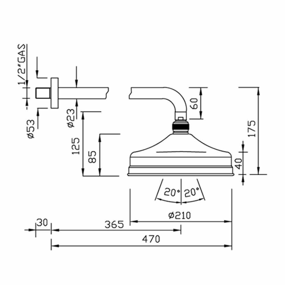 Klassisk vægmonteret enkelt jet messing brusehoved Made in Italy.