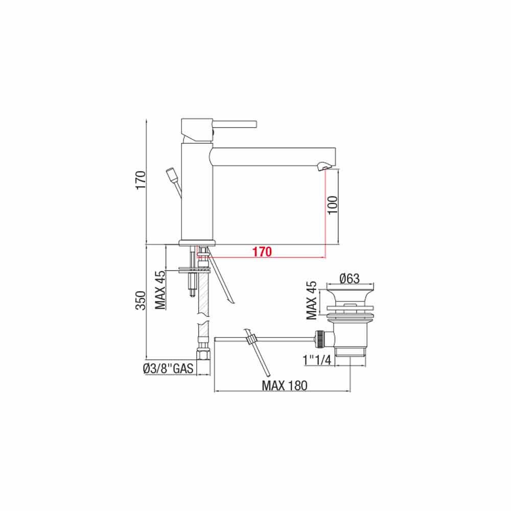 Tilgængelige muligheder:- med 1 '' 1/4 afløb;
