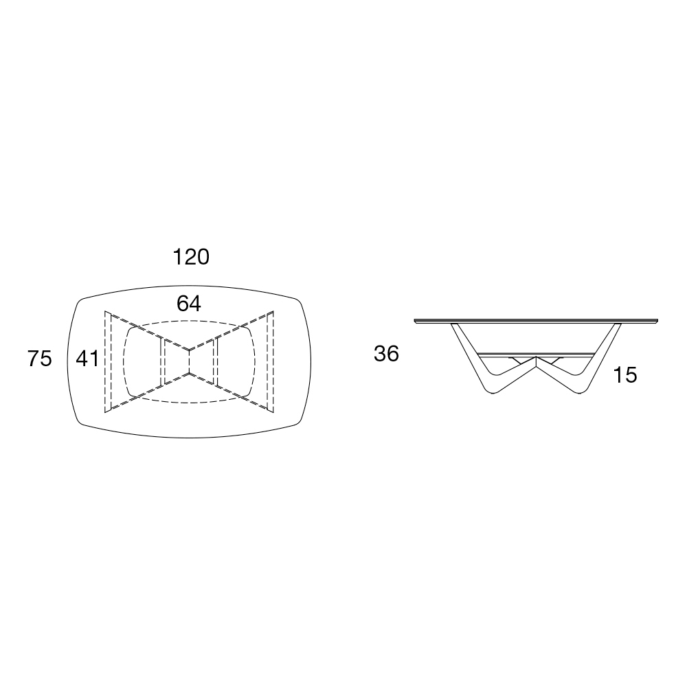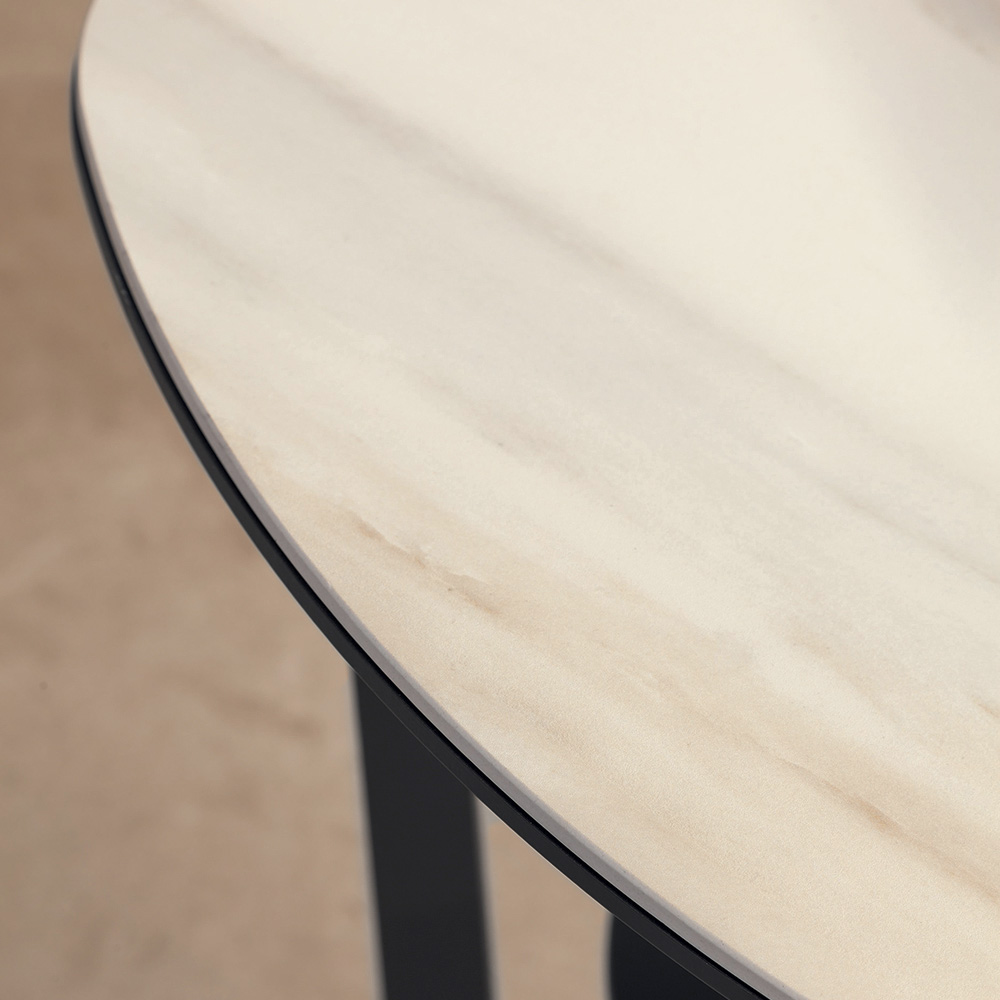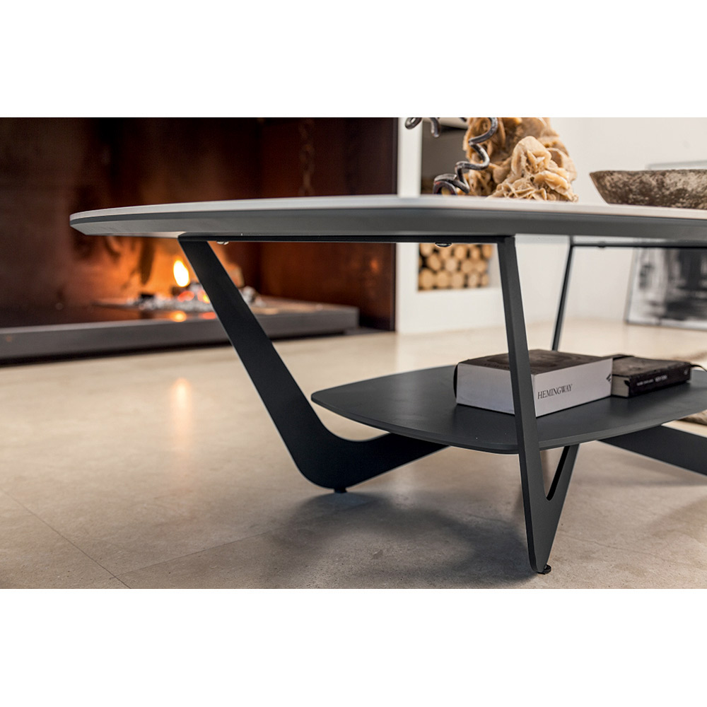 Sofabord i metal og blank keramikplade med opbevaring, lavet i Italien.