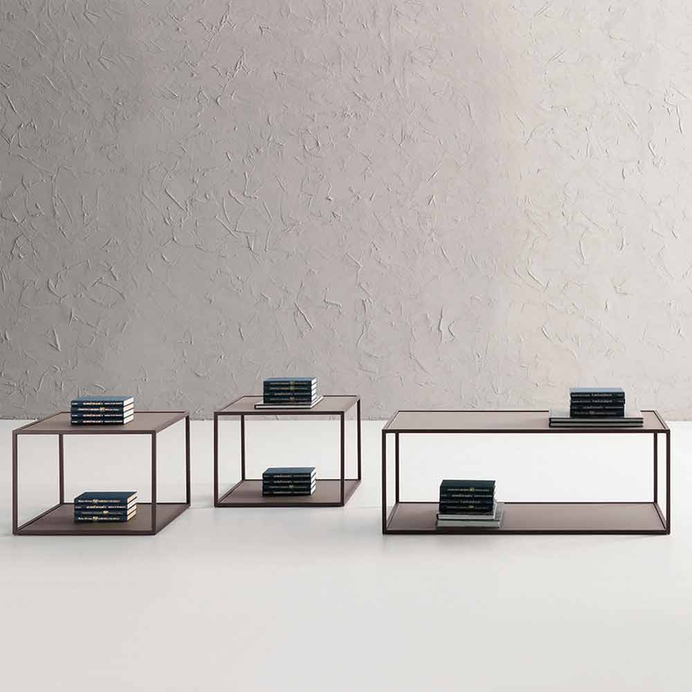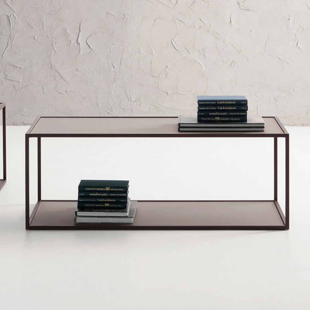 Sofabord fremstillet i Italien med grafitfinish malet metalstruktur og dobbelt top i anti-fingeraftryk satinglas med mudderfinish. Et produkt, hvis idé er baseret på enkelhed og væsentlighed for at give liv til et møbel med en moderne og alsidig stil, der er i stand til at tilpasse sig enhver stue og bringe et innovativt og elegant touch. Den særlige konstruktion af strukturen gør det muligt at opnå en dobbelt understøtningsflade, hvilket giver mulighed for at organisere forskellige nyttige genstande såsom bøger, magasiner eller fjernbetjeninger, men også enkle dekorative elementer, der beriger designet og øger dets værdi ved at understrege det. den eksklusive æstetik .