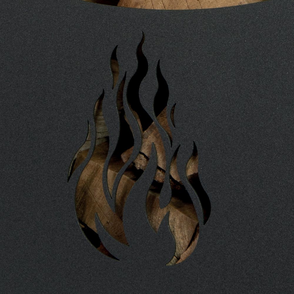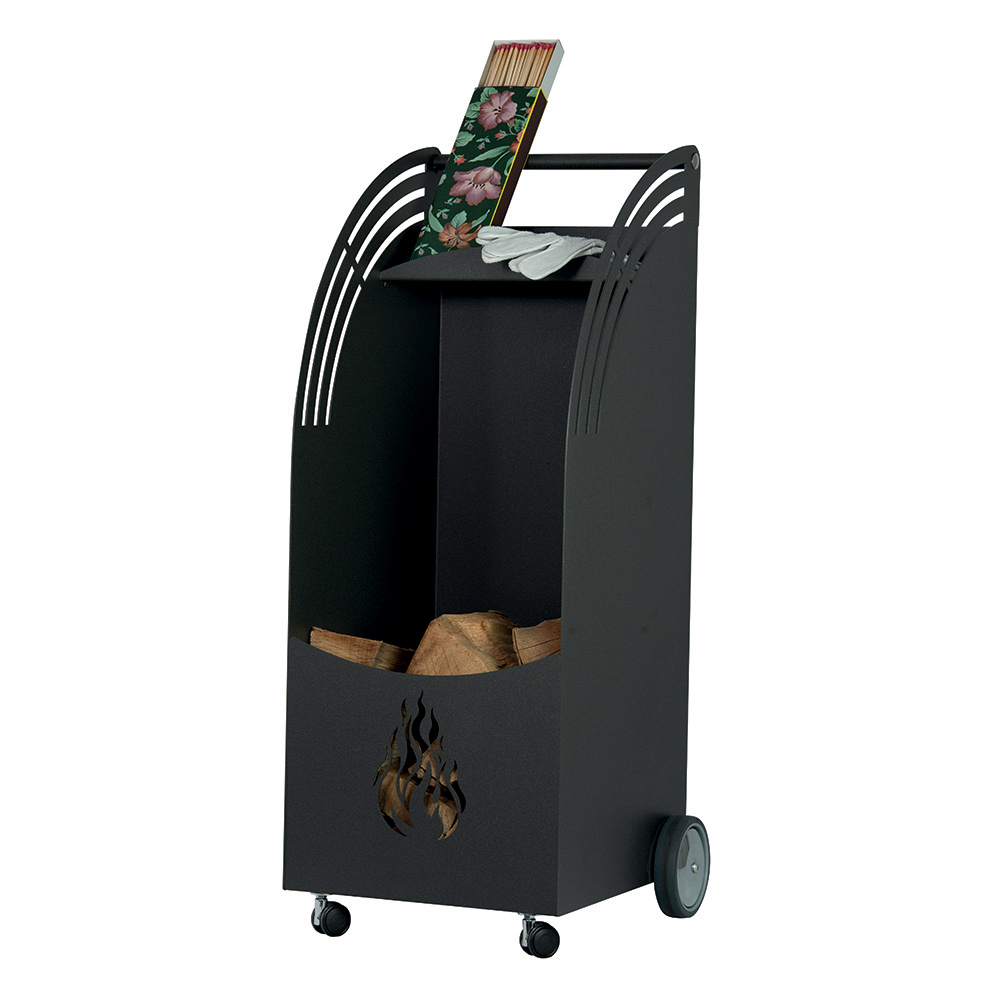 Vognen har robuste hjul , der giver nem mobilitet, så du nemt og ubesværet kan flytte træ fra et område til et andet. Flammeudskæringen på frontpanelet beriger ikke kun vognen æstetisk, men fremmer også ventilationen, hvilket er afgørende for at holde træet tørt og klar til brug.