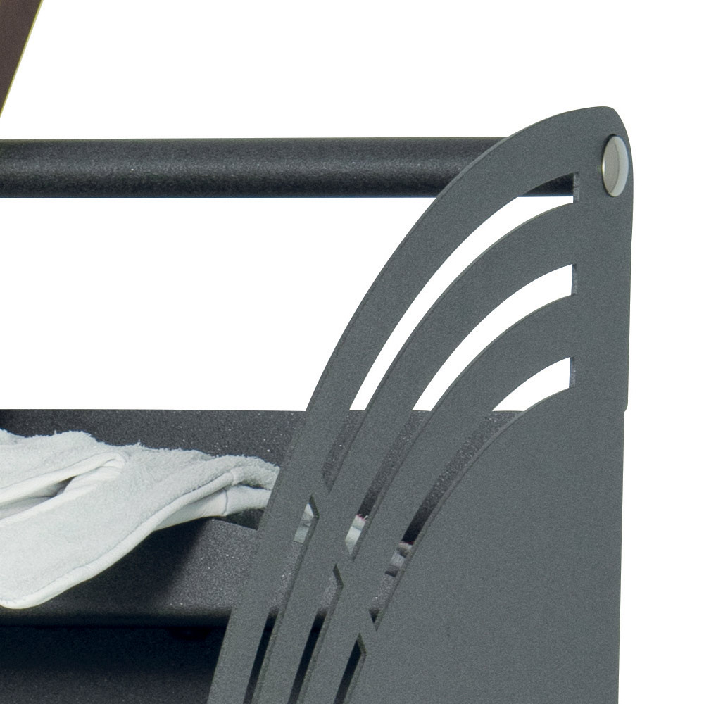 Denne trævogn er et yderst praktisk og stilistisk tiltalende tilbehør til håndtering af brænde i din pejs. Det smarte design kombinerer rene, moderne linjer med enestående funktionalitet, hvilket gør den til en ideel tilføjelse til ethvert hjemmemiljø. Den lodrette struktur optimerer pladsen og tillader en god mængde træ at blive indeholdt i et lille fodaftryk.