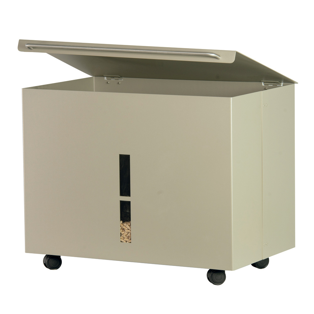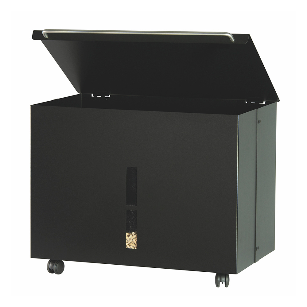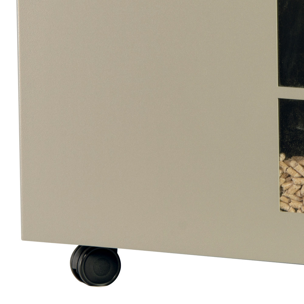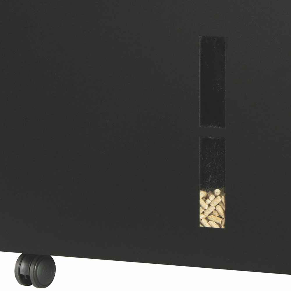 Udstyret med hjul kan denne pilleholder nemt flyttes, hvilket sikrer, at tankning af din pejs eller pilleovn altid er en enkel og ubesværet aktivitet. Dens design er lige så praktisk, som den er en fryd for øjet, hvilket gør den til et perfekt supplement til ethvert moderne og stilbevidst miljø.