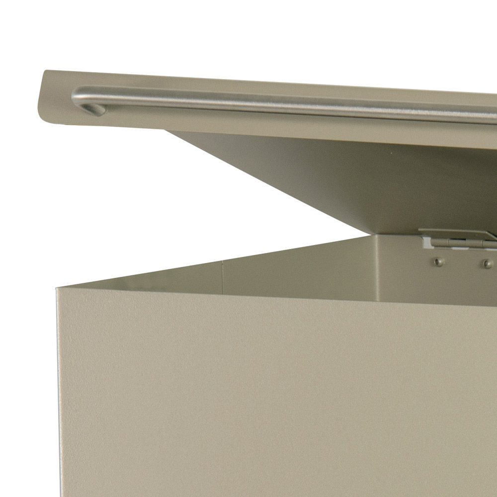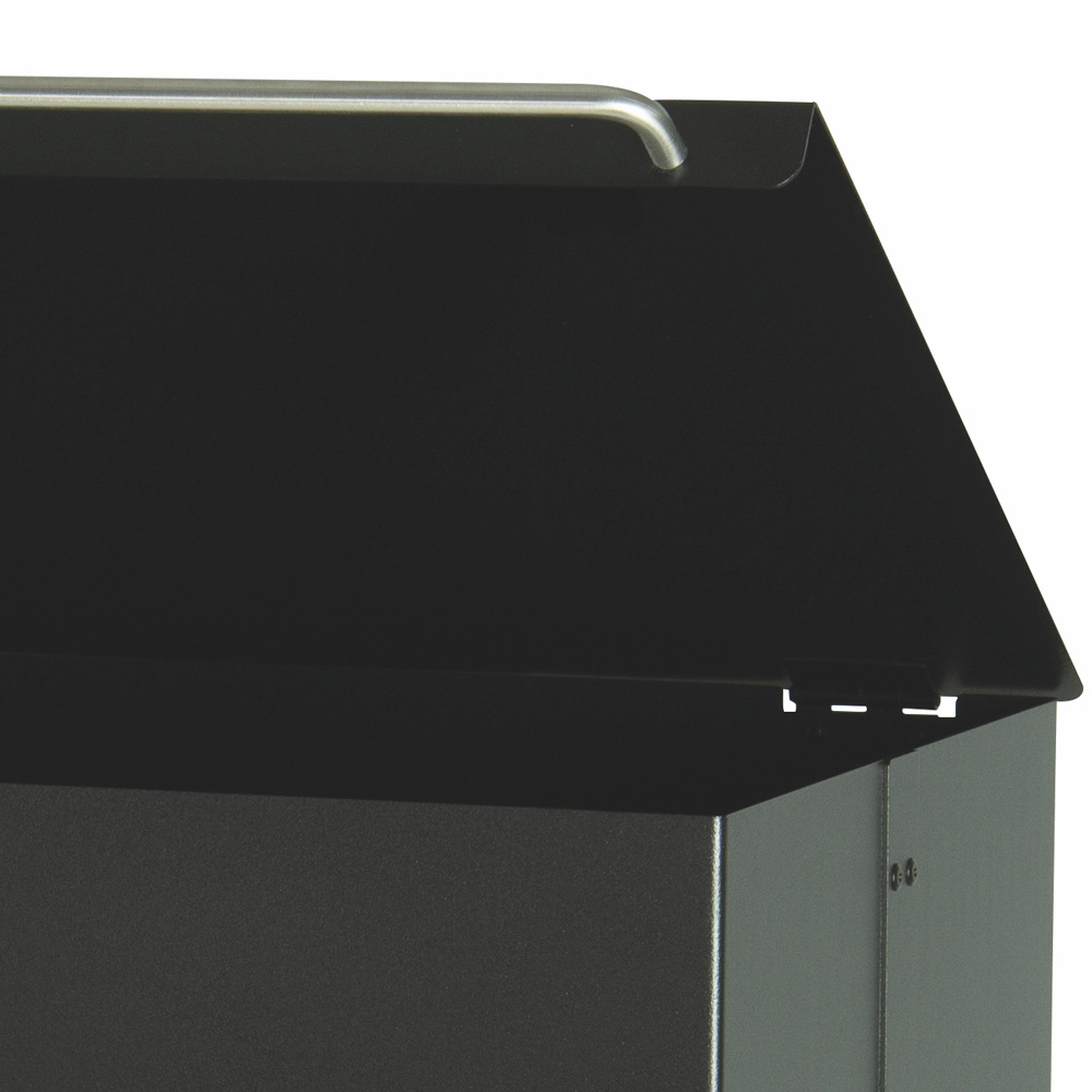 Toplåget kombineret med et slankt håndtag sikrer, at indholdet er let tilgængeligt og beskyttet mod støv. Et lille koøje på forsiden af beholderen tilføjer ikke kun en spændende visuel accent, men giver dig også mulighed for at overvåge pelletniveauet, hvilket sikrer, at du aldrig løber tør for brændstof.