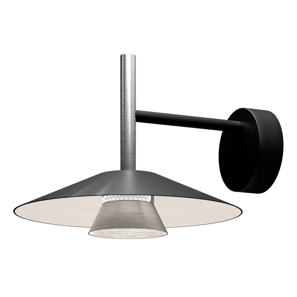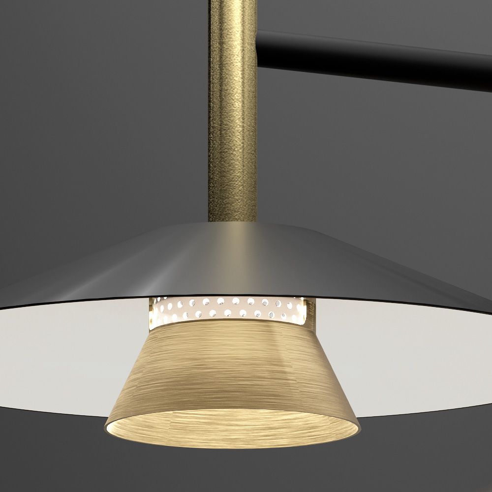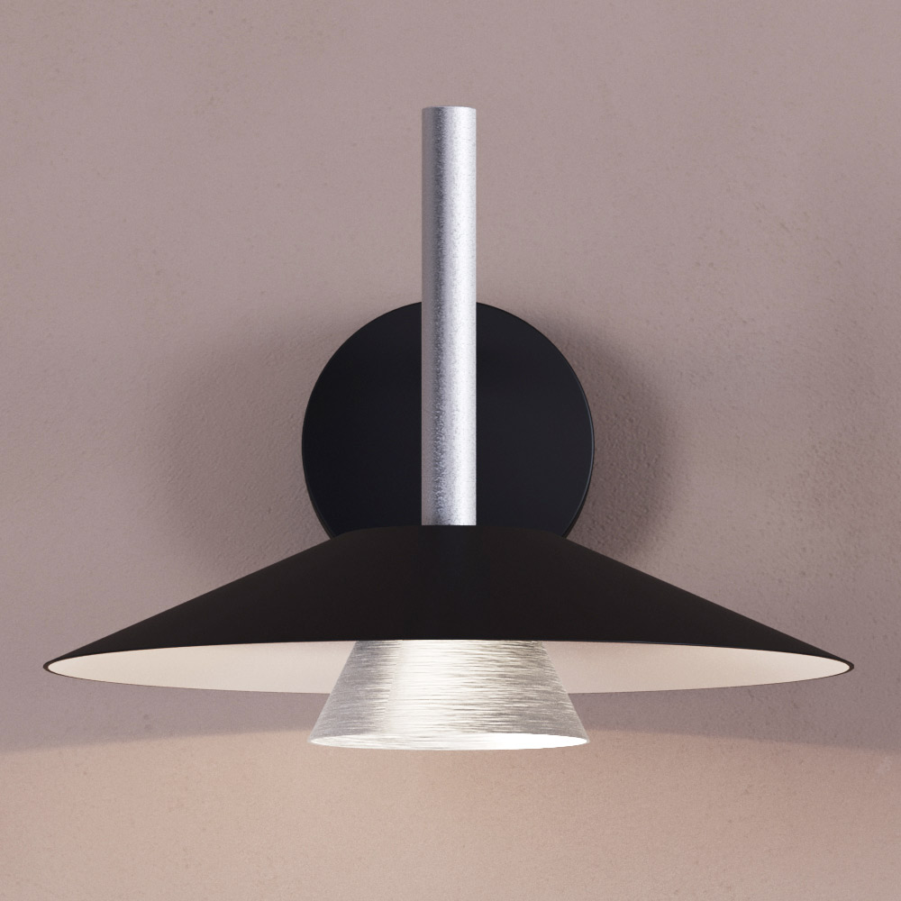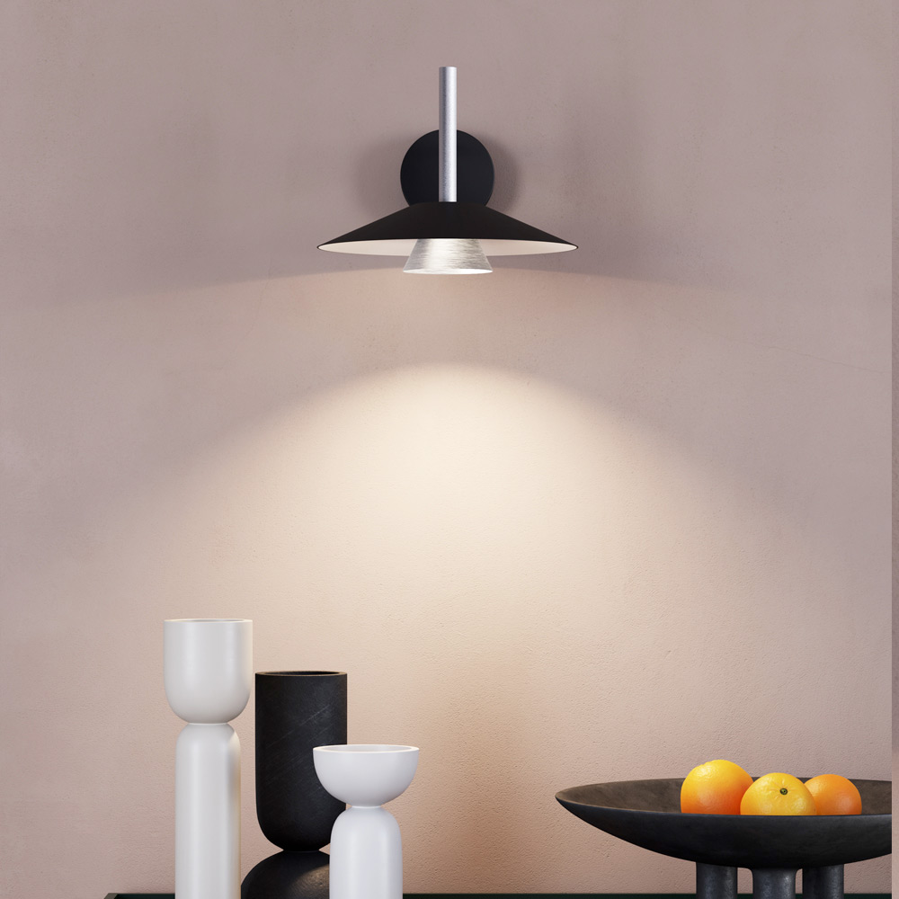 Denne lampe er en perfekt fusion af moderne design og industriel elegance , designet til dem, der elsker raffinerede detaljer og en dristig æstetik. Den geometriske struktur, med en konisk diffusor og en stor reflekterende skive, skaber et fascinerende spil af volumener og kontraster , der sikrer et retningsbestemt og omsluttende lys.