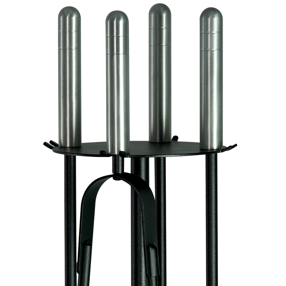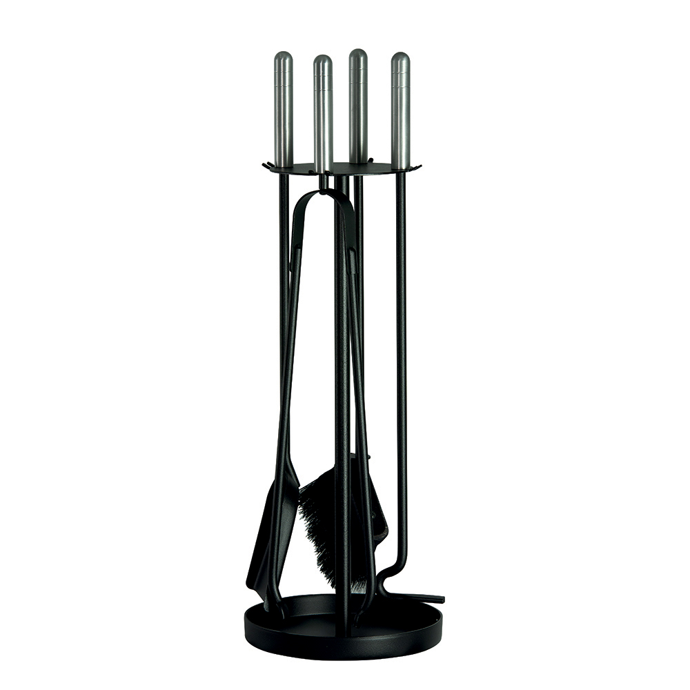 Den lodrette støtte fylder ikke kun lidt, men organiserer tilbehør effektivt og holder dem ryddelige og let tilgængelige. Den cirkulære base opsamler eventuelle rester eller aske, der kan falde ned, mens du bruger værktøjerne, og holder området omkring pejsen rent.