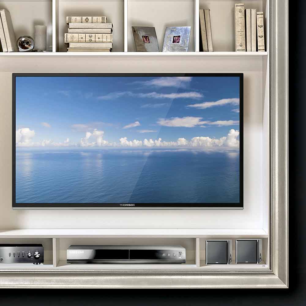Inde i rammen er der et fjernsynsrum, som er placeret i midten og er flankeret af elegante hylder , der giver plads til bøger og dekorative genstande for at personliggøre og berige rummet. Nedenunder rummer diskrete rum stilfuldt multimedieenheder, der holder miljøet ryddeligt og uden synlige ledninger.