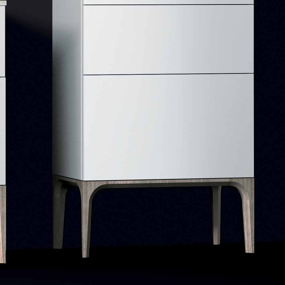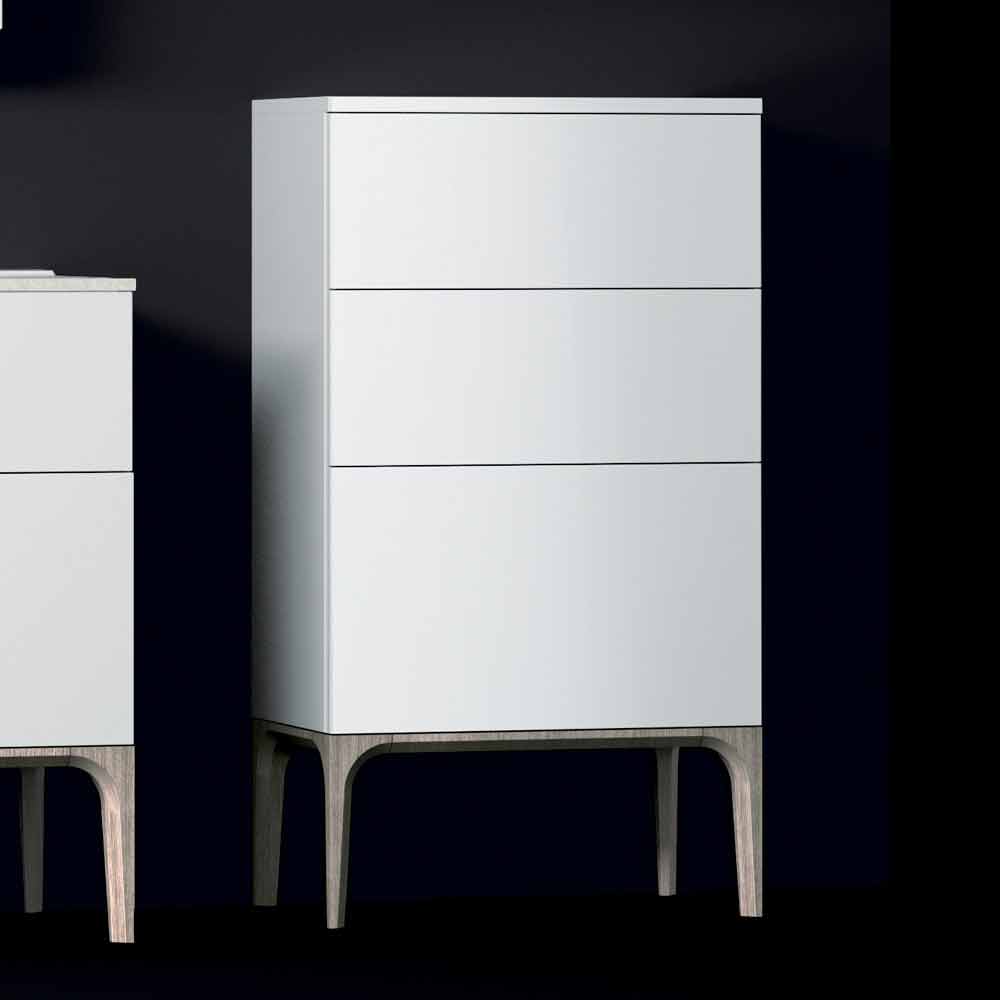 Design kommode med 3 skuffer med solide og harmoniske linjer i lakeret træ med massive naturlige eg fødder, fås i forskellige finish.