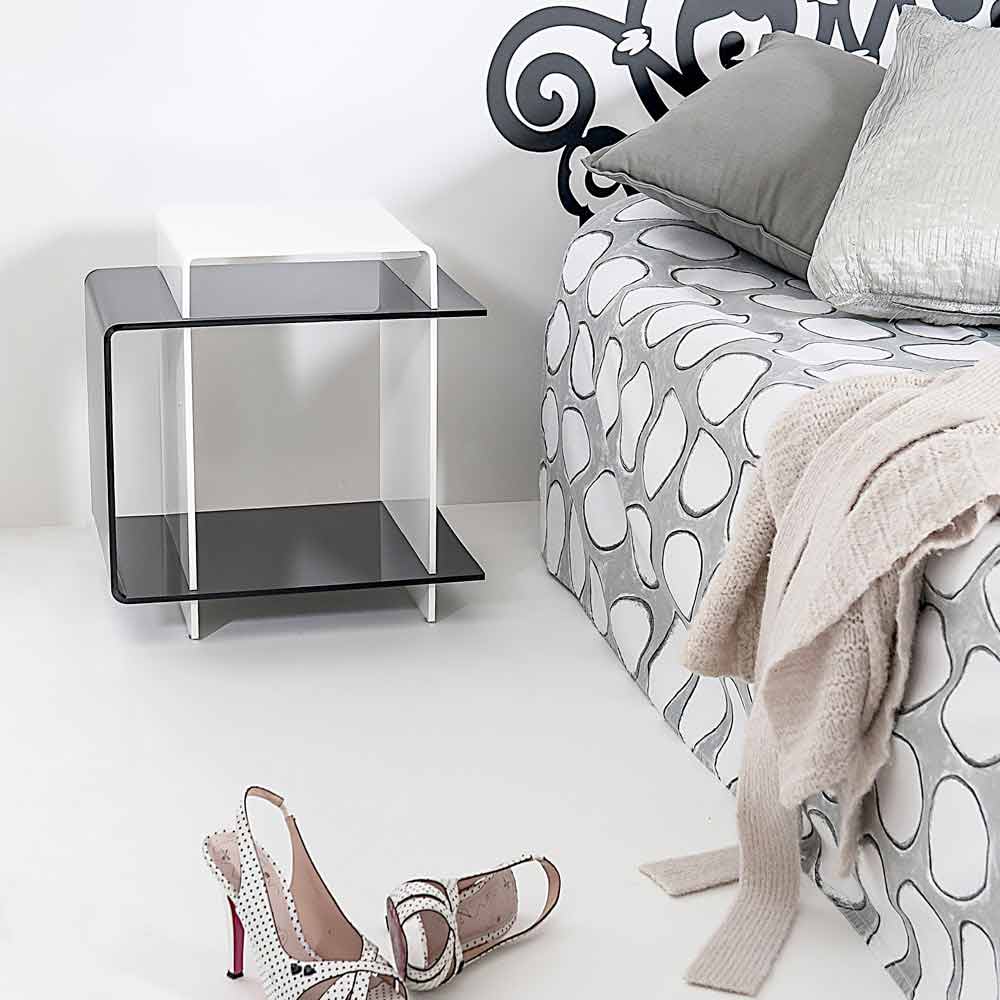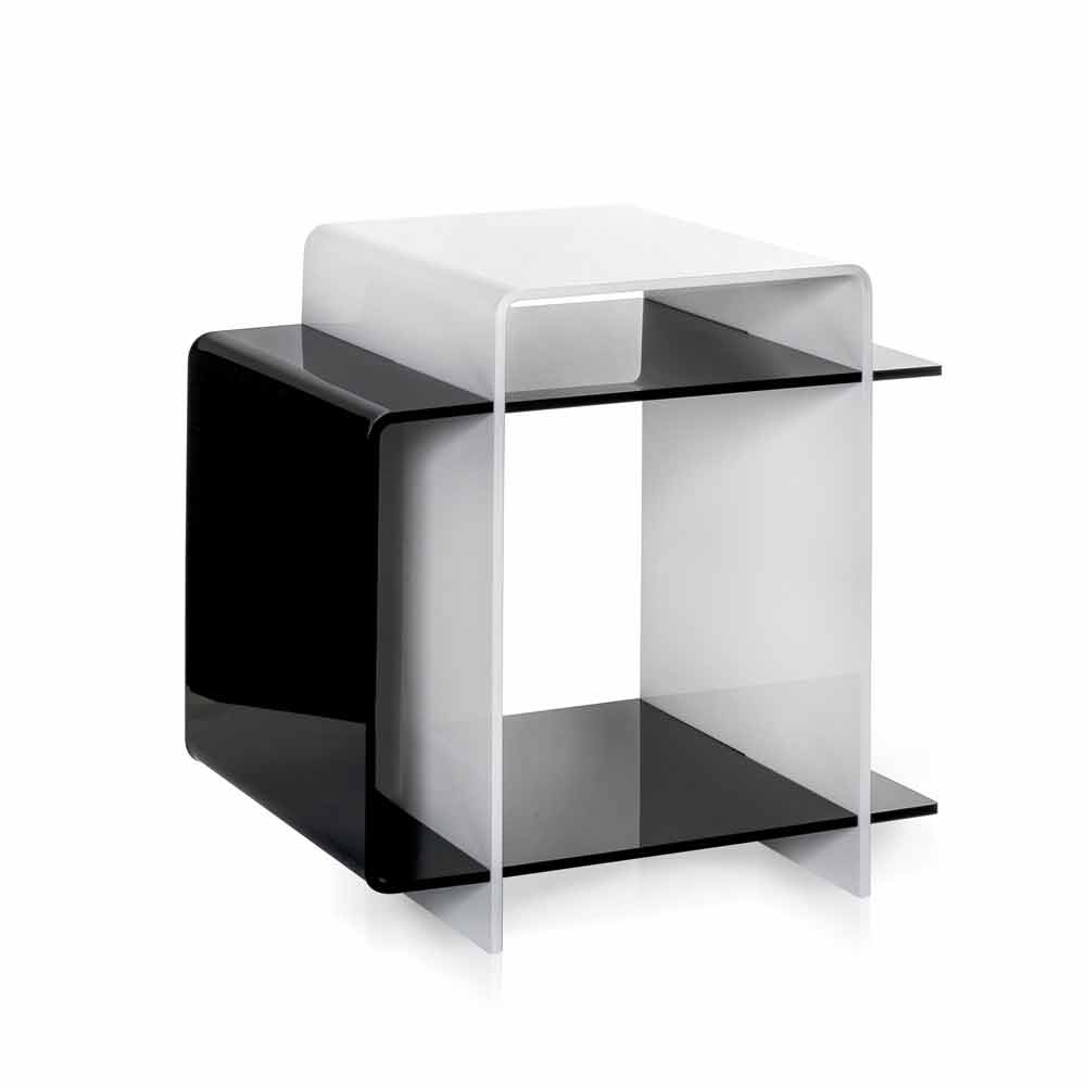 Alsidige lille bord / bedside sort og hvid 3 hylder, inspireret af geometrier og de bi-farver 70'erne, fremstillet af 100% ren polymer plexiglas, laserskåret og foldet ved høje temperaturer. Det vigtige tykkelse gør strukturen helt selvbærende. Plexiglas er slagfast, elastisk, holdbart og varmeisolerende. Lysstyrken og lysstyrken forblive konstant og uændret over tid. Plexiglass PMMA fra jomfru polymer anvendes ved ikke-toksisk, hypoallergen, lugtfri og antibakteriel. Genanvendeligt 100%. Udtænkt, designet og fremstillet i Italien, med italienske materialer.