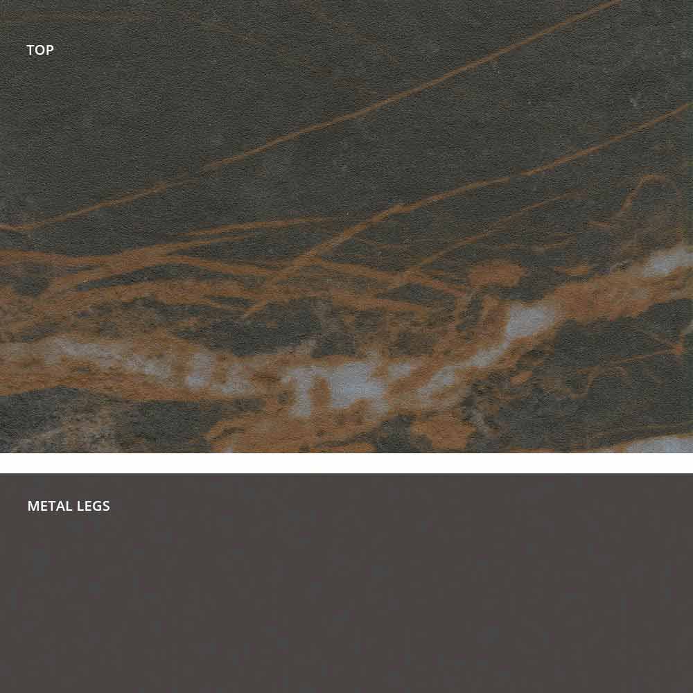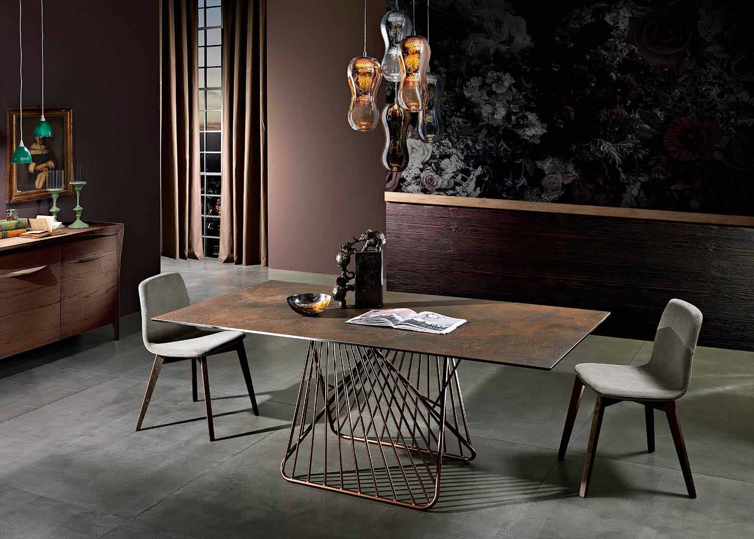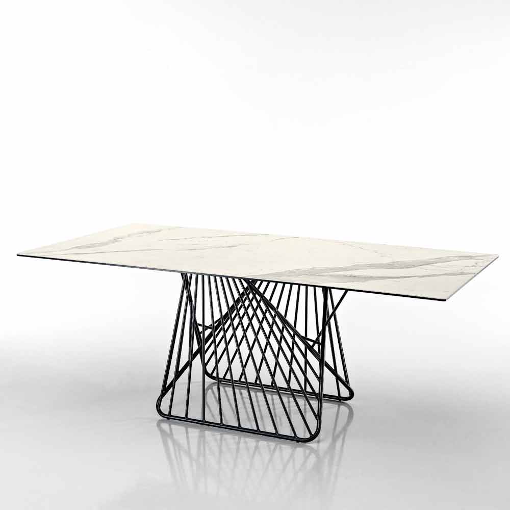 Mitia er et fast bord i Italien med en malet metalbase og glaskeramisk overflade .