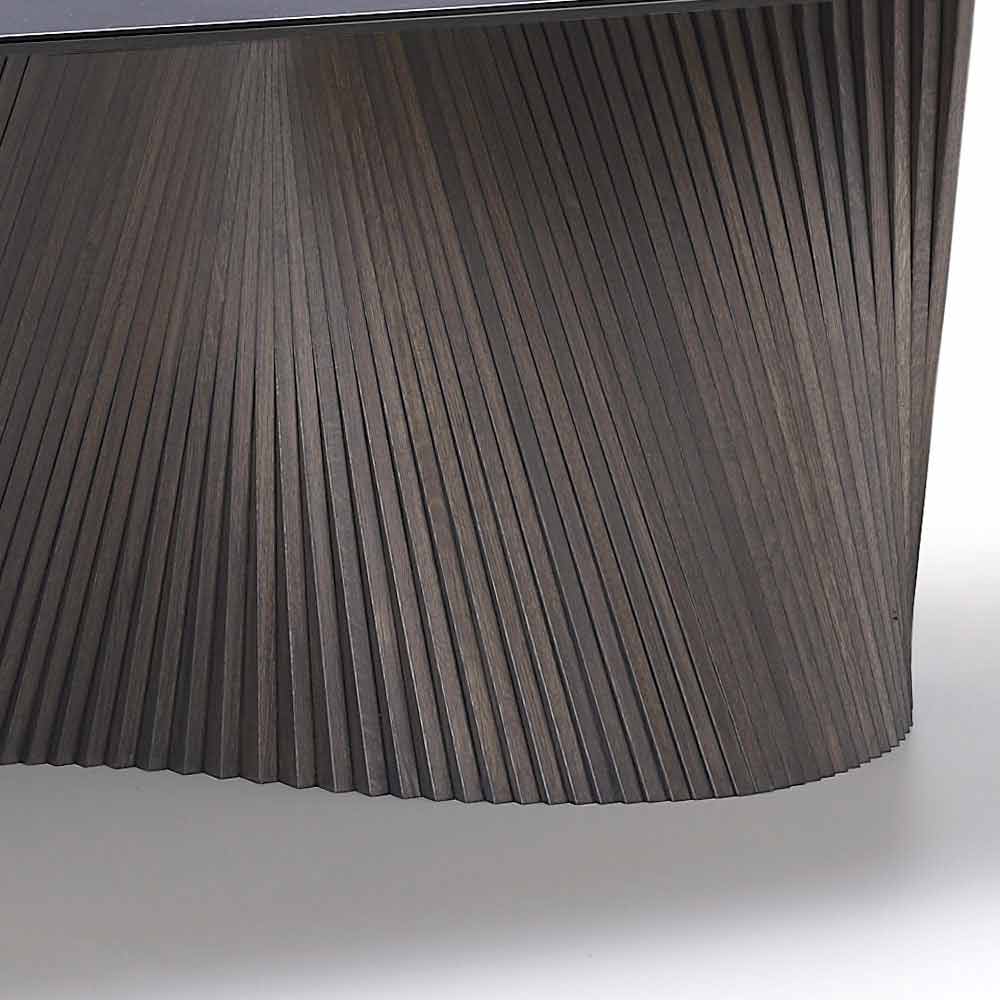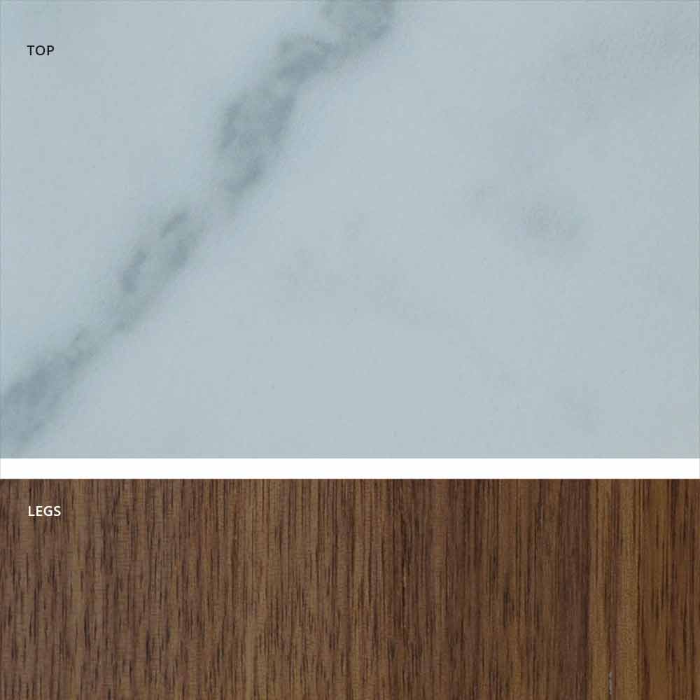 - Basis bestående af mere end 70 lameller i håndolieret asketræ i valnødfarve og top i form af halvcask i stentøj i uigennemsigtig statuario hvid marmor.