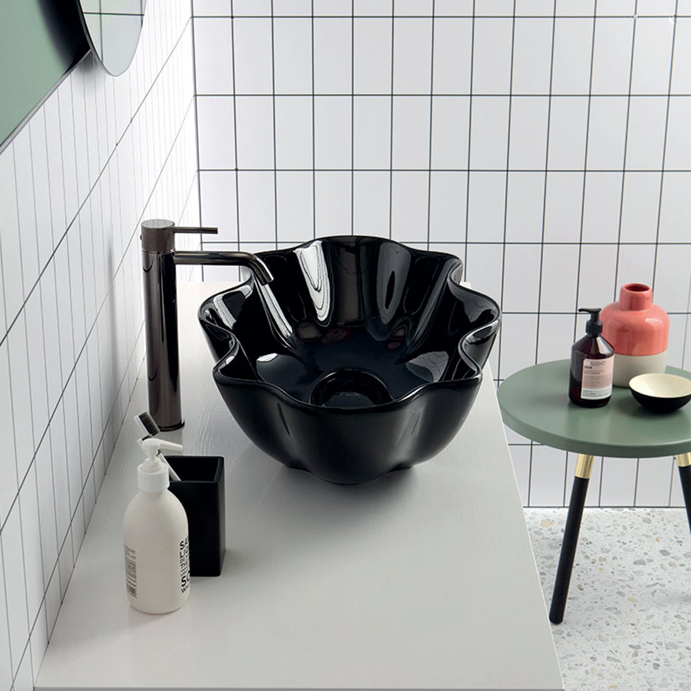 Den kreative form repræsenterer dens reelle styrke og gør den til en passende idé for dem, der elsker at indrette deres rum med excentriske strejf af farve og en stærk visuel indflydelse på et avantgarde-badeværelse.