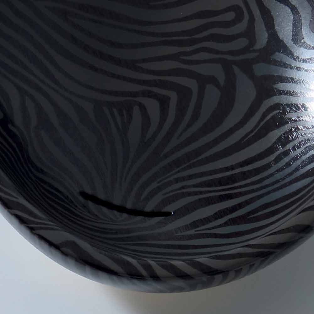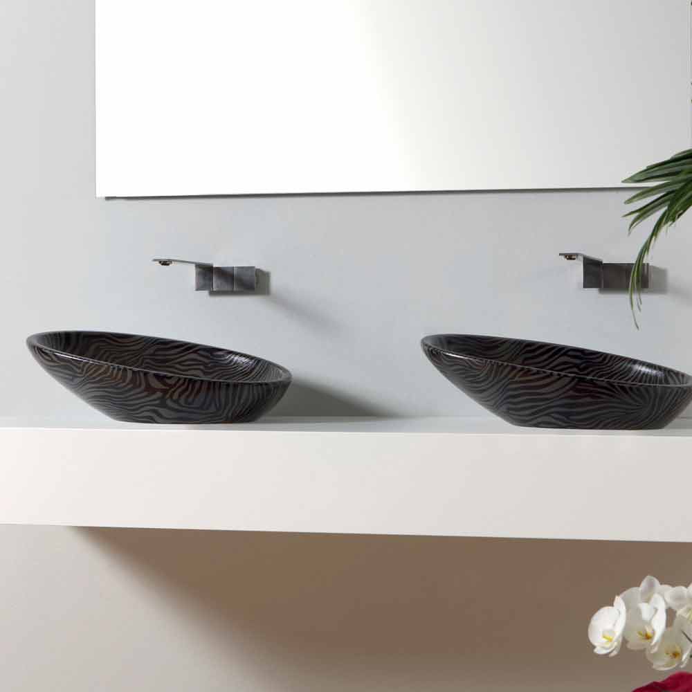 Glossy er bordpladen håndvask fremstillet i Italien af håndværkere i keramik med en zebrafinish i sølv.
