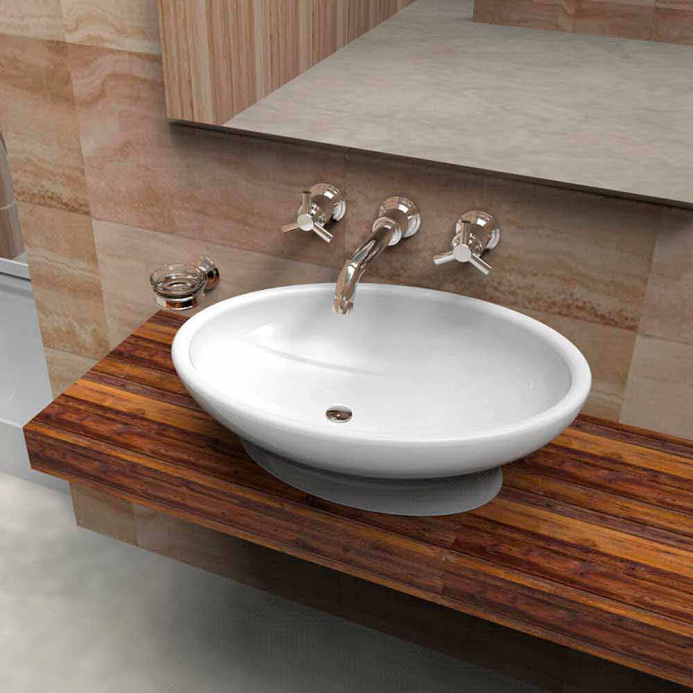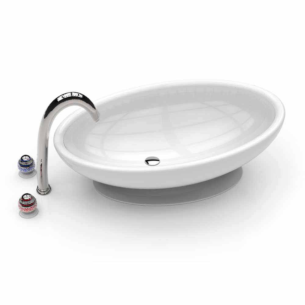 Formen på denne vask til badeværelset minder om en æghalvdel, hvorfra den har sit navn.