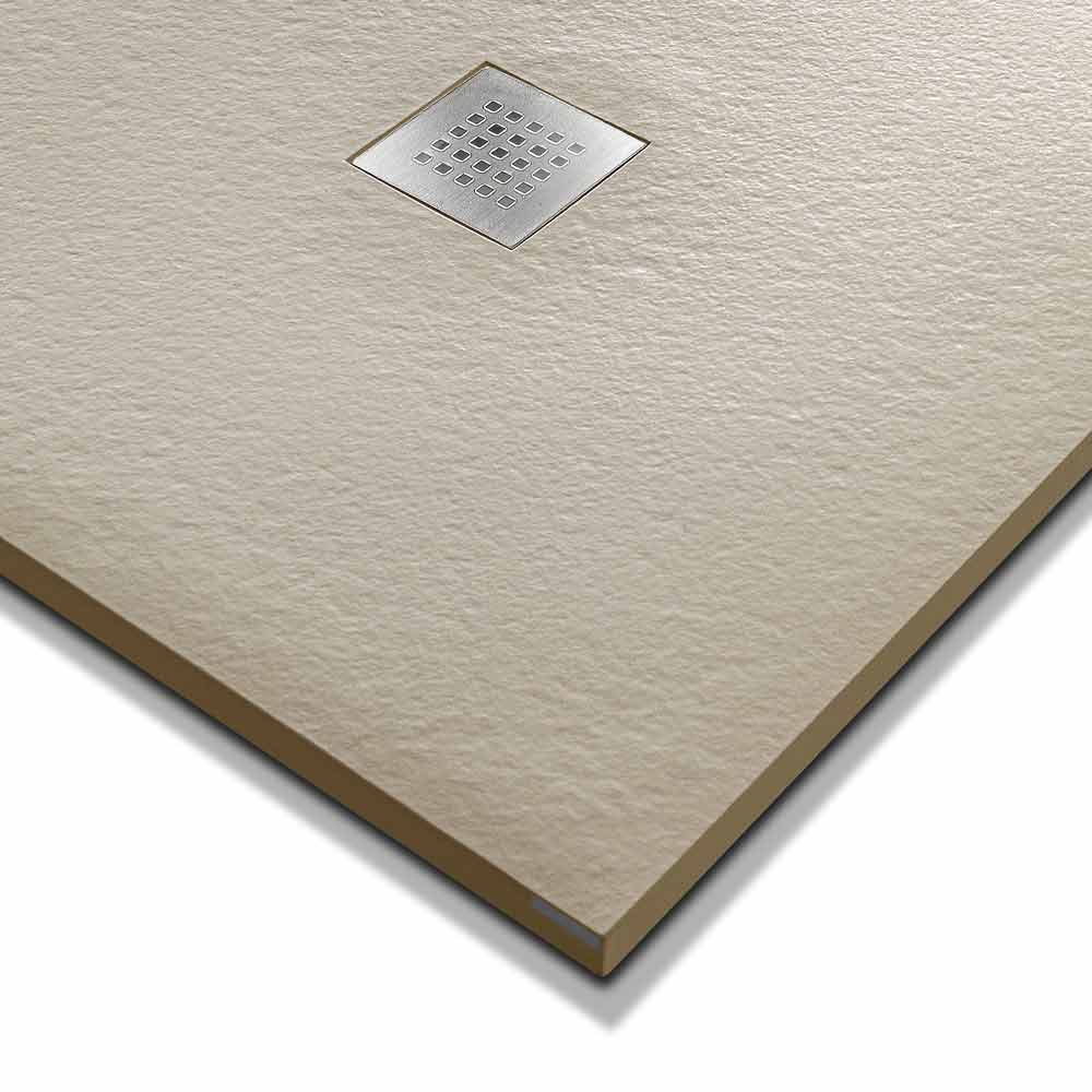 Moderne rektangulær brusebad 120x80 i harpiks med finish i steneffekt.