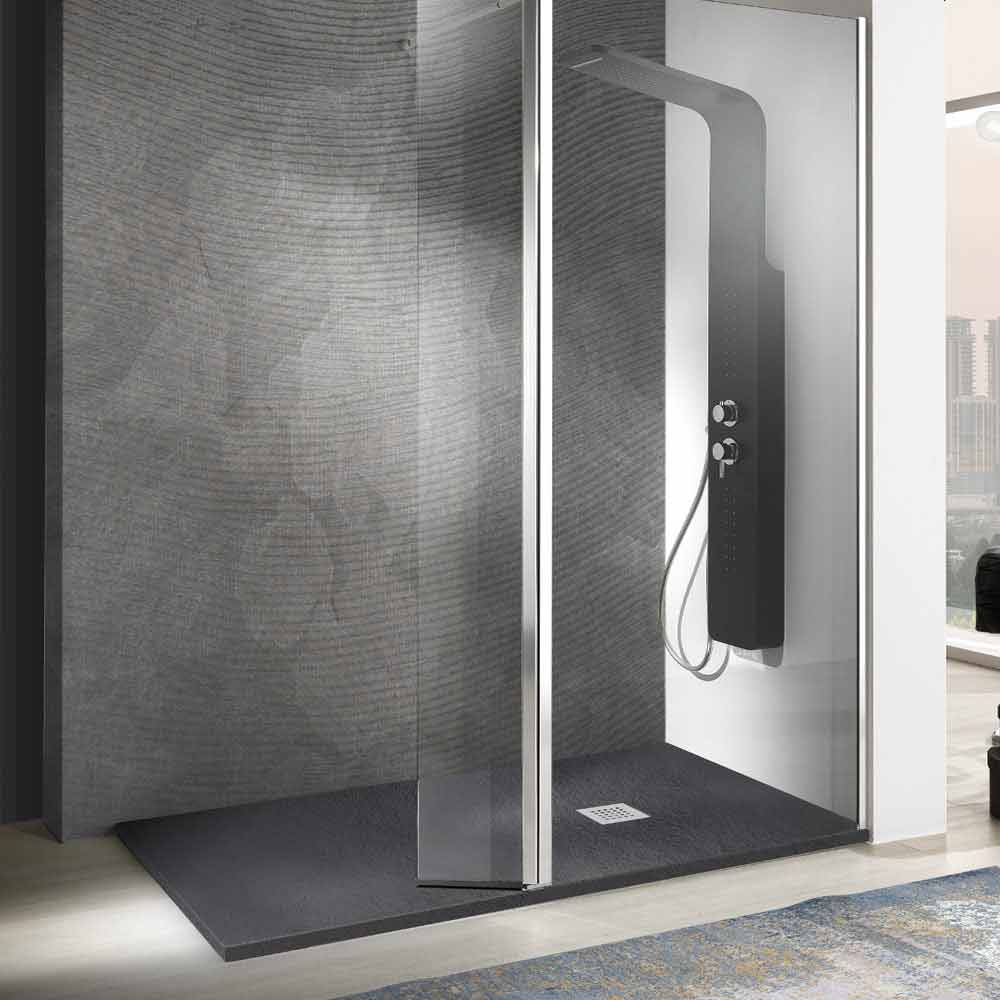 Moderne brusebad 160x70 i sten-effekt finish komplet med stålgitter.
