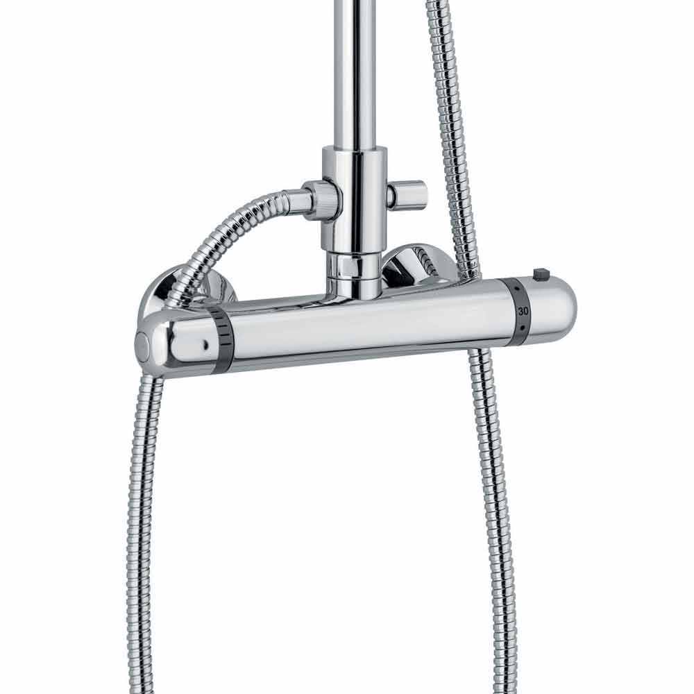 Moderne brusersøjle i forkromet messing med termostatblander Made in Italy.