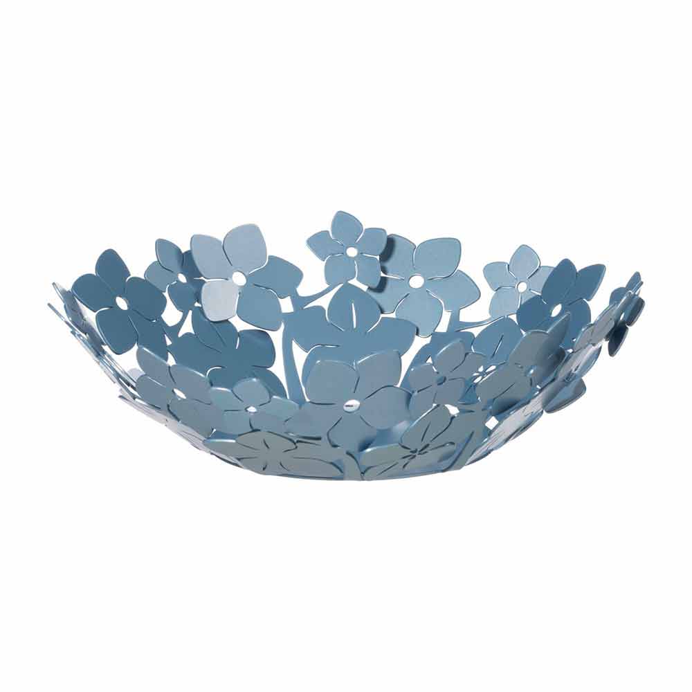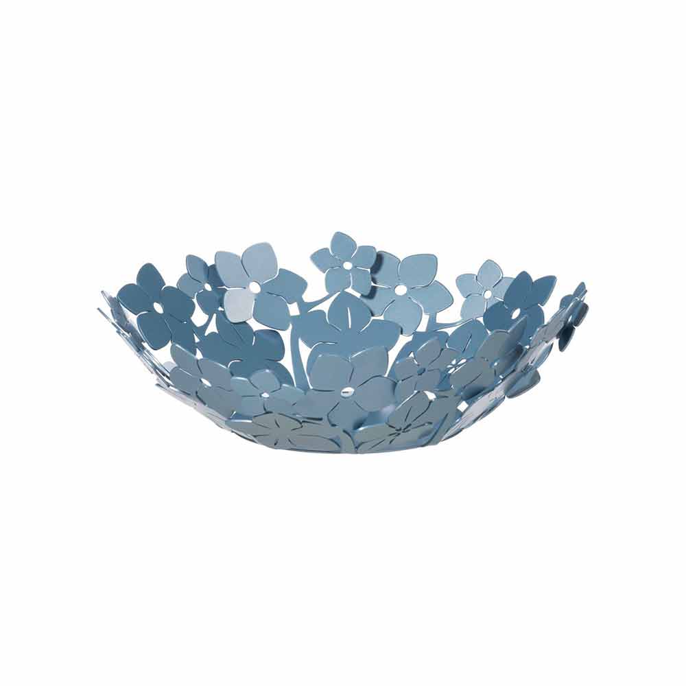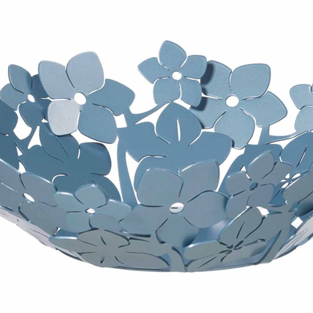 Midtstykke med moderne blomster, håndlavet i Italien i hvidt jern, marmor, lyseblå eller mudder.