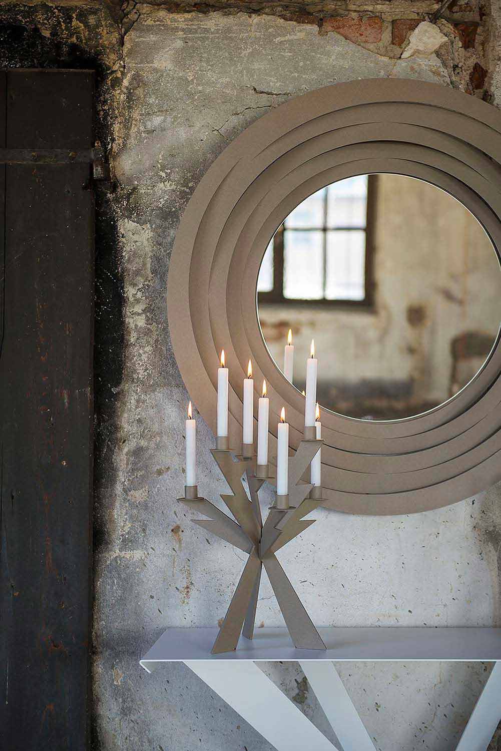 Den Oregano runde væg spejl er lavet helt i hånden af italienske jern håndværkere fås i forskellige farver: