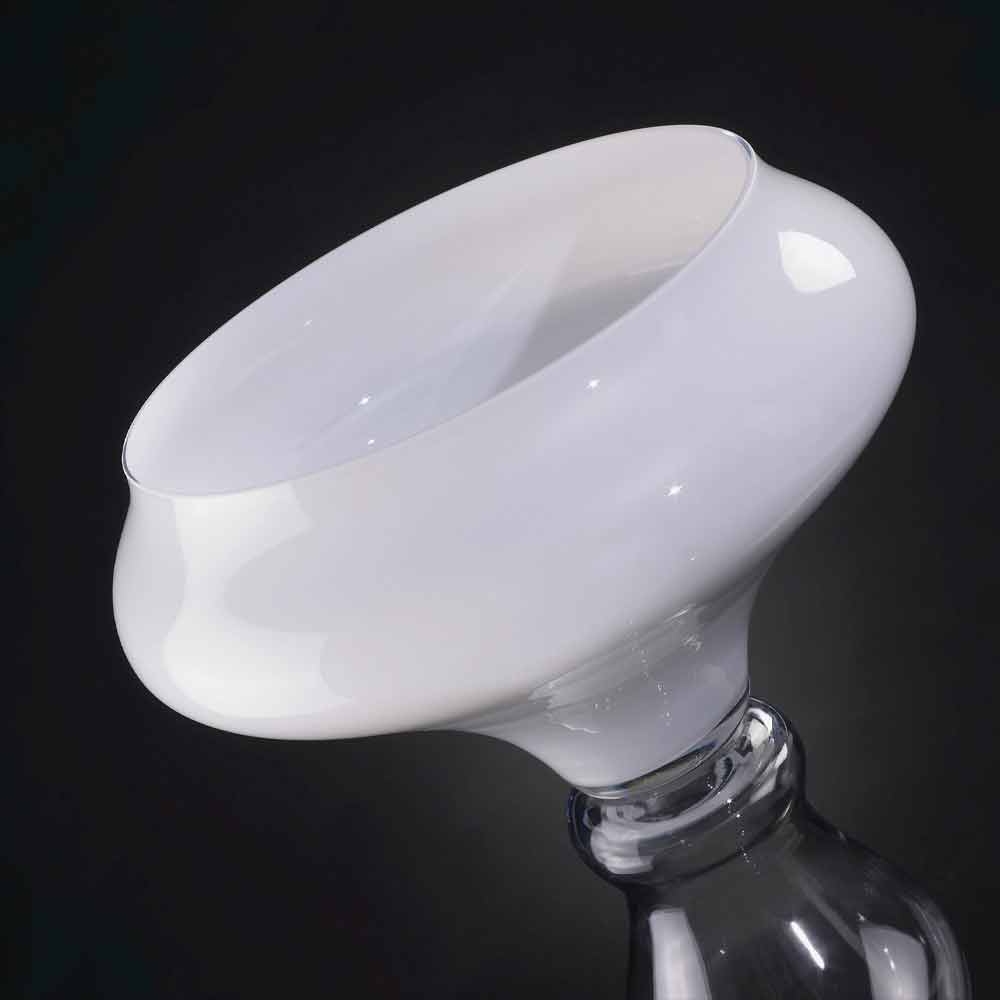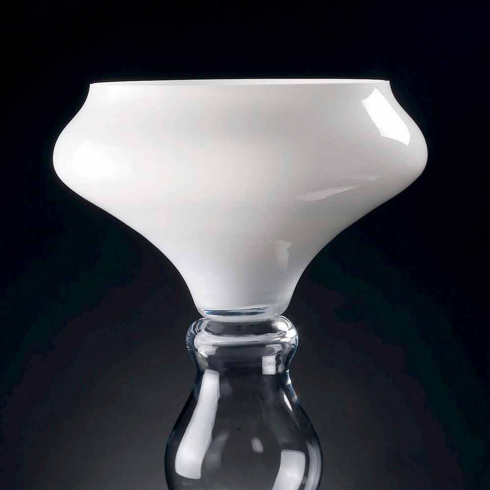 Elegant vase til interiør i hvidt og gennemsigtigt glas fremstillet i Italien.