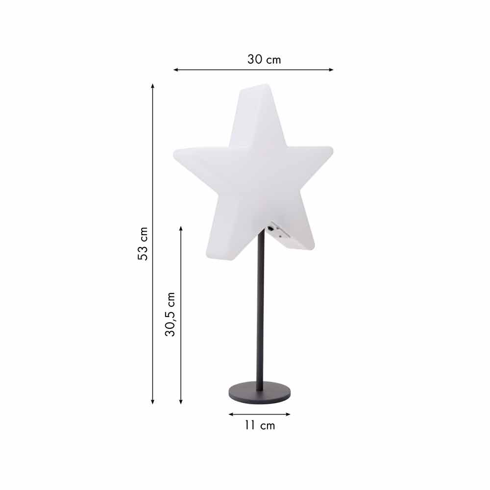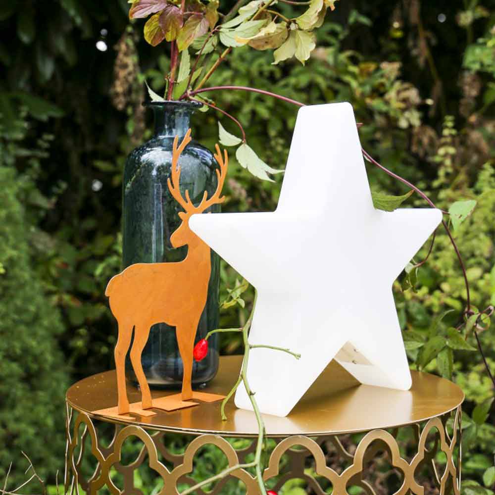 Den femspidede stjerneformede bordlampe har et klassisk, elegant og alsidigt design, der kan placeres i opholdsstuen snarere end på terrassen. Også ideel som julepynt.