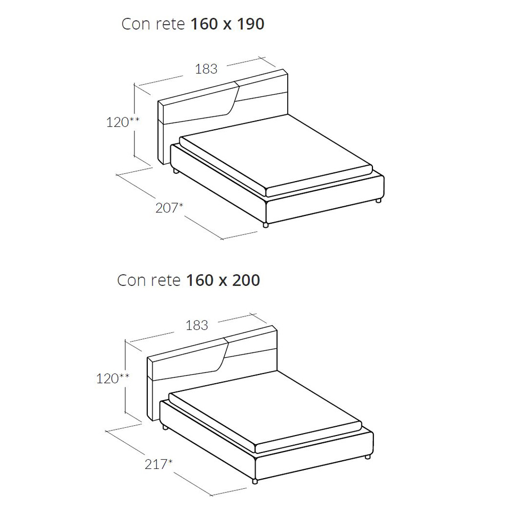 - L183 x H120 x P219 cm (til 160x200 sengebund)