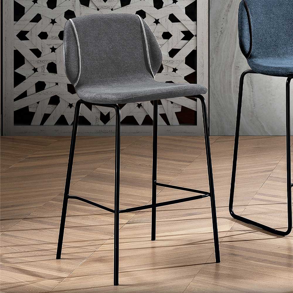 Gør dit køkken eller spisestue mere behageligt og elegant med den moderne monokokal skammel med sæde betrukket med farvet vandafvisende stof med kant fås i forskellige farver: