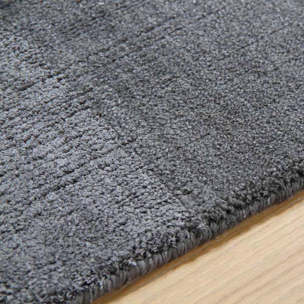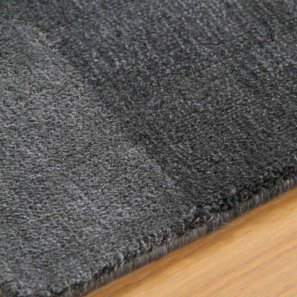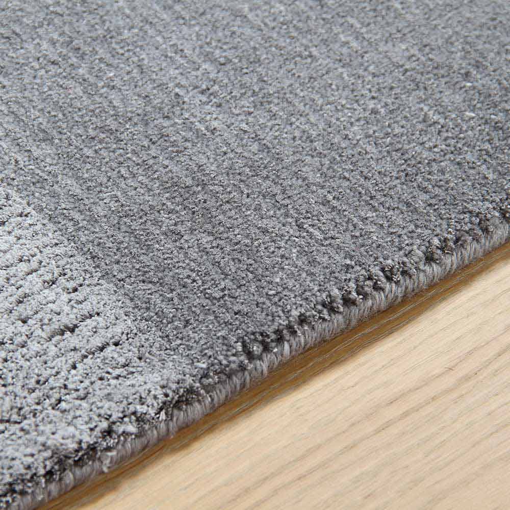 Stort design, stort tæppe i silke, bomuld og uld fås i flere farver med et tone-til-tone-bånd.