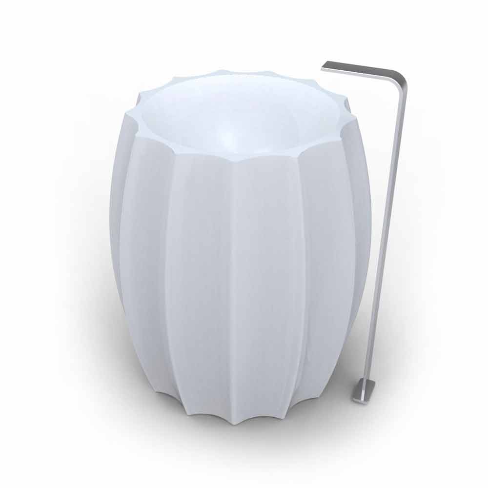 Solid Surface fritstående håndvask; med former inspireret af naturen og planteverdenen. Dens rigelige og "ribbede" linjer viser en profil, der minder om formen af en sukkulent plante og især en "kaktus" - som den har fået sit navn fra - dog "skåret" på toppen. Ud over den "stribede" profil i højden, der er synlig foran, har den også en behagelig halvkugleformet kumme. Den er ergonomisk, da selv de laterale ribbede fremspring alligevel er afrundede. Håndvask fås i to forskellige farvevarianter: Hvid (RAL9003) eller Sort (RAL9005).