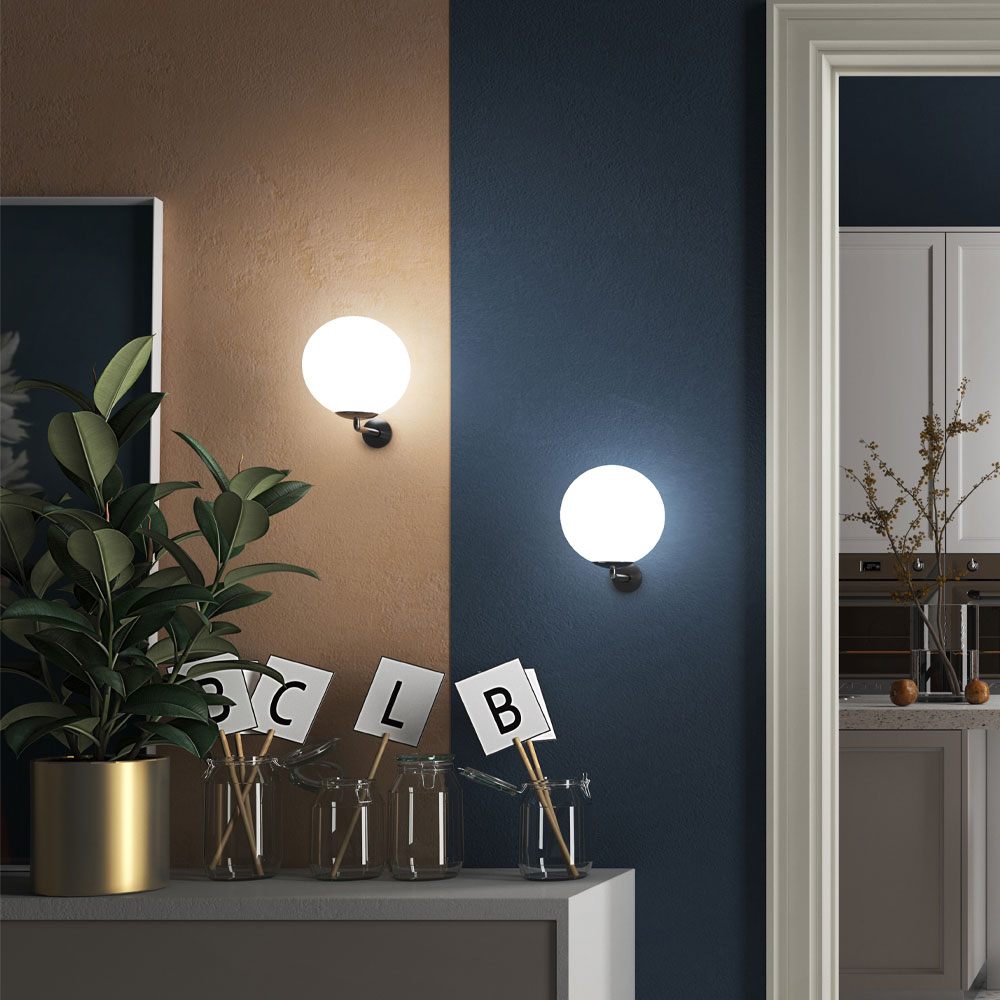 Væglampe med rund diffuser i håndblæst glas i Venedig.