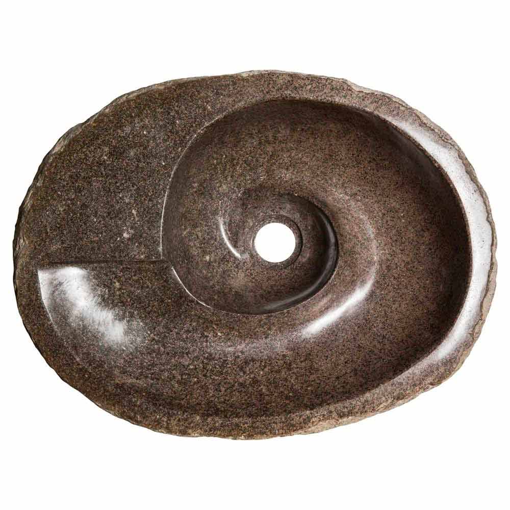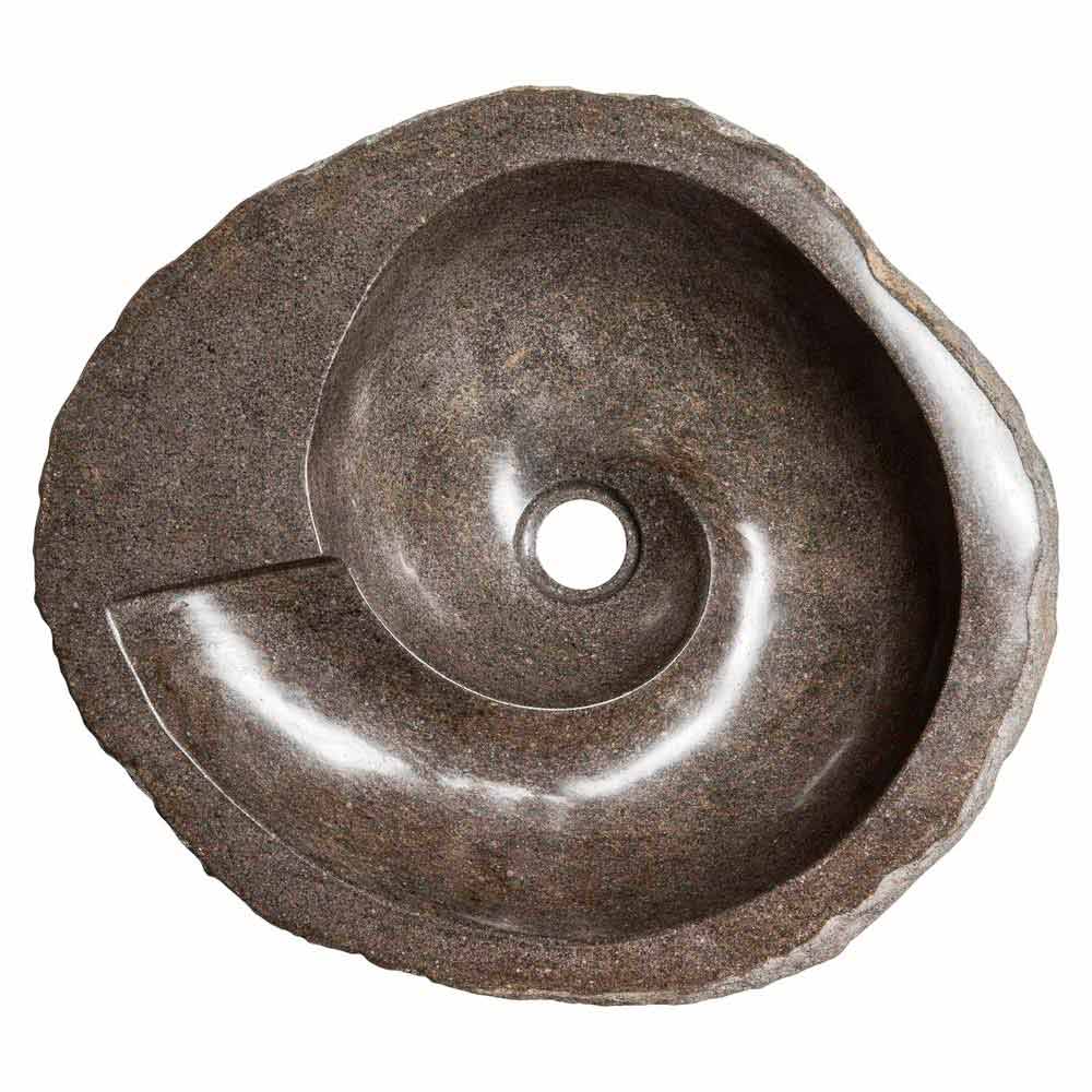 Busca er en fantastisk cirkulær håndvask med en uregelmæssig form håndlavet i flodsten.