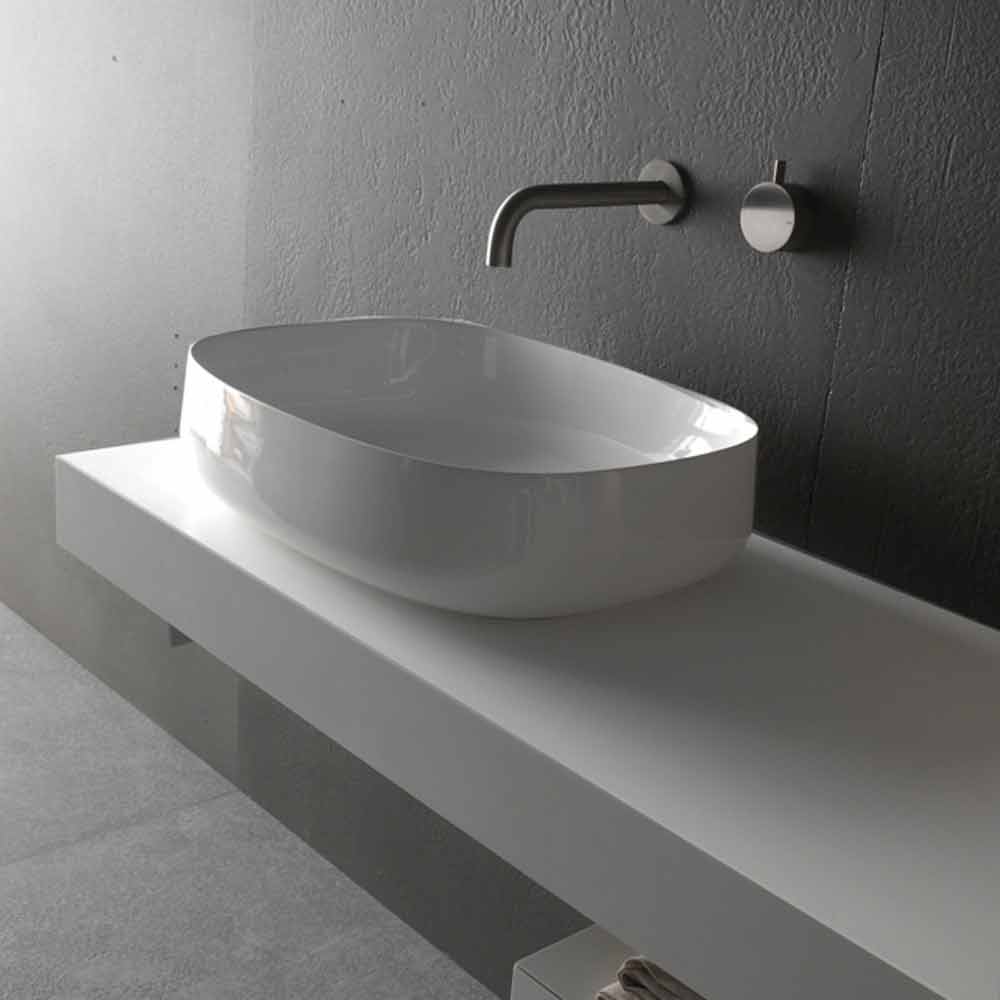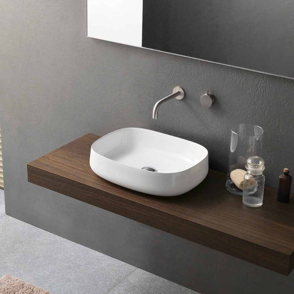 Moderne håndvask til bordplade, hvid keramisk design, fremstillet i Italien.
