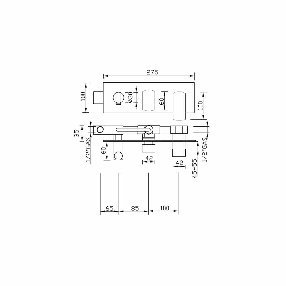 Fremstillet i Italien indbygget brusearmatur i messing.