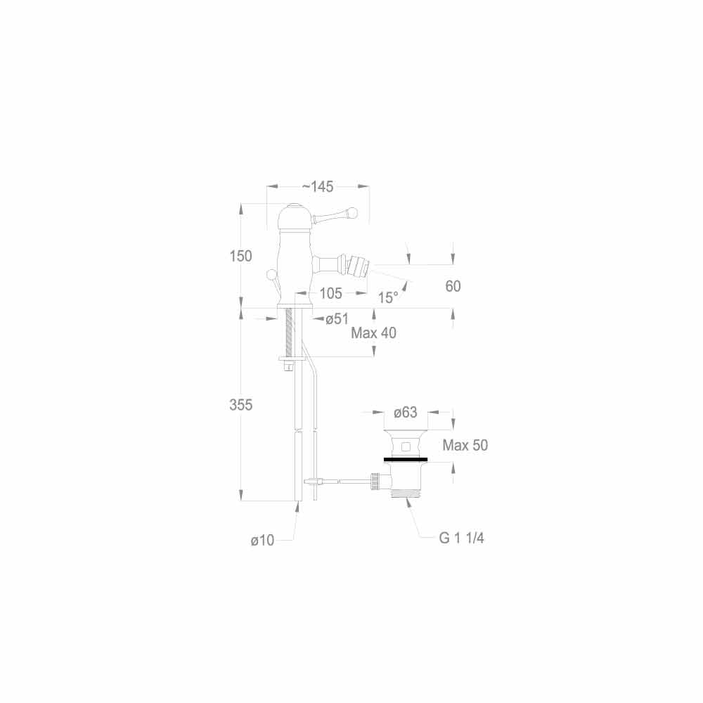 Forkromet messing bidetarmatur 150 mm høj Lavet i Italien.