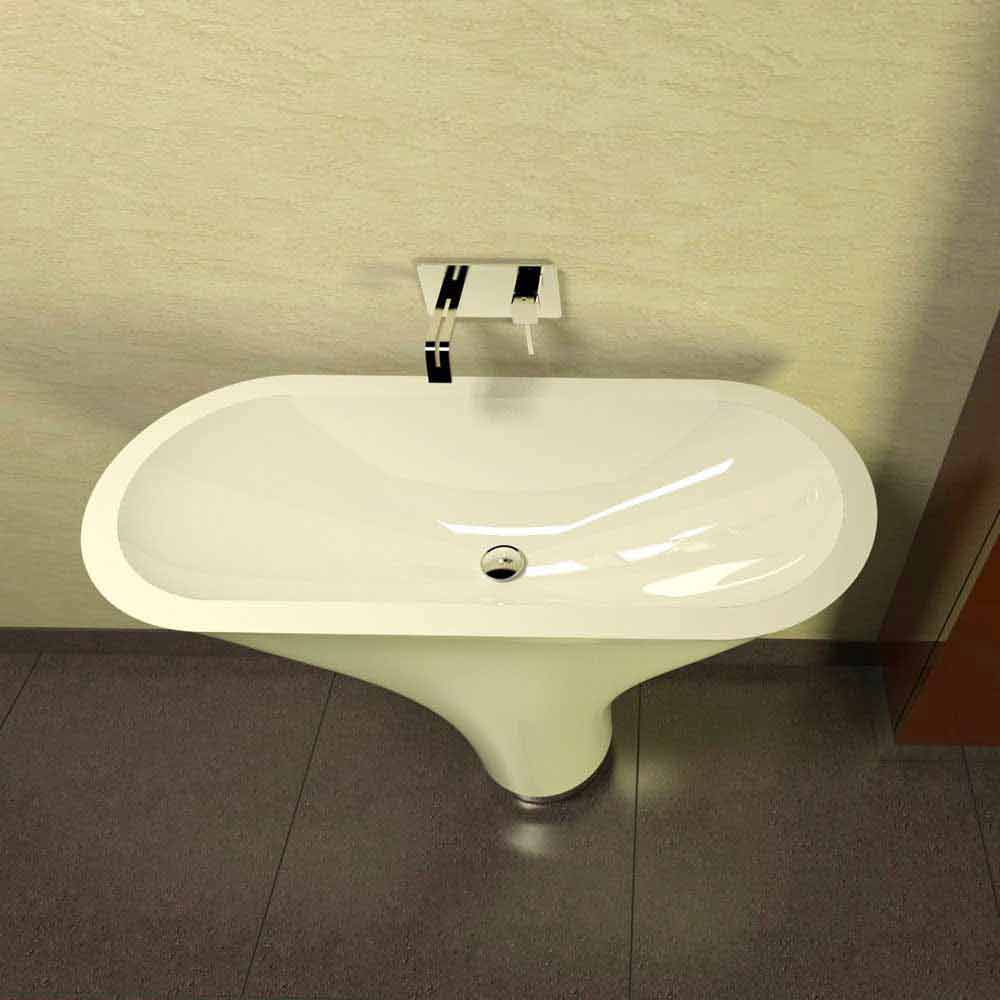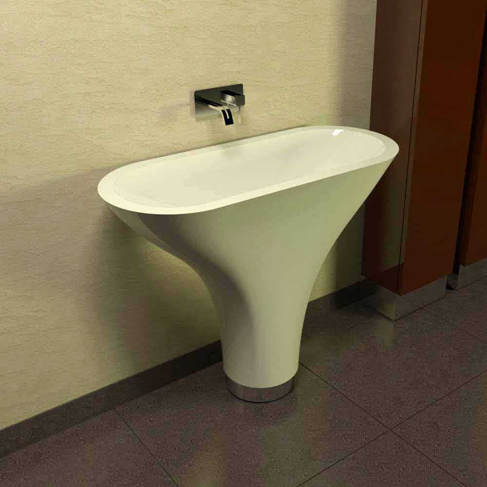 En elegant piedestal håndvask med generøse dimensioner, der udstråler en stærk design personlighed. Først og fremmest et designmøbel med en klassisk stil i badeværelsesmøblernes verden, men samtidig innovativt til brug af harpiksholdige materialer, kombineret med en stålplade for at afslutte håndvaskens søjle, hvilket gør det til et design objekt. simpelthen unikt.