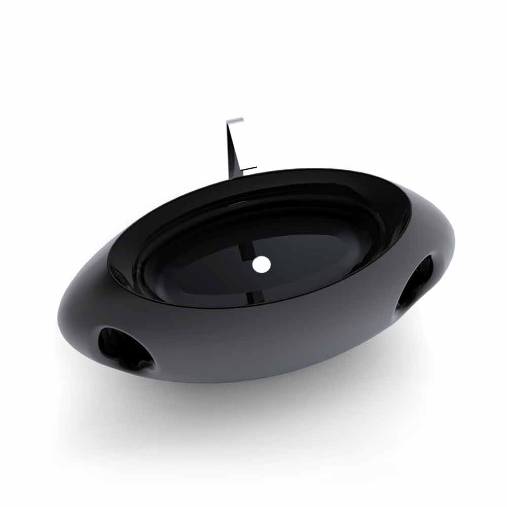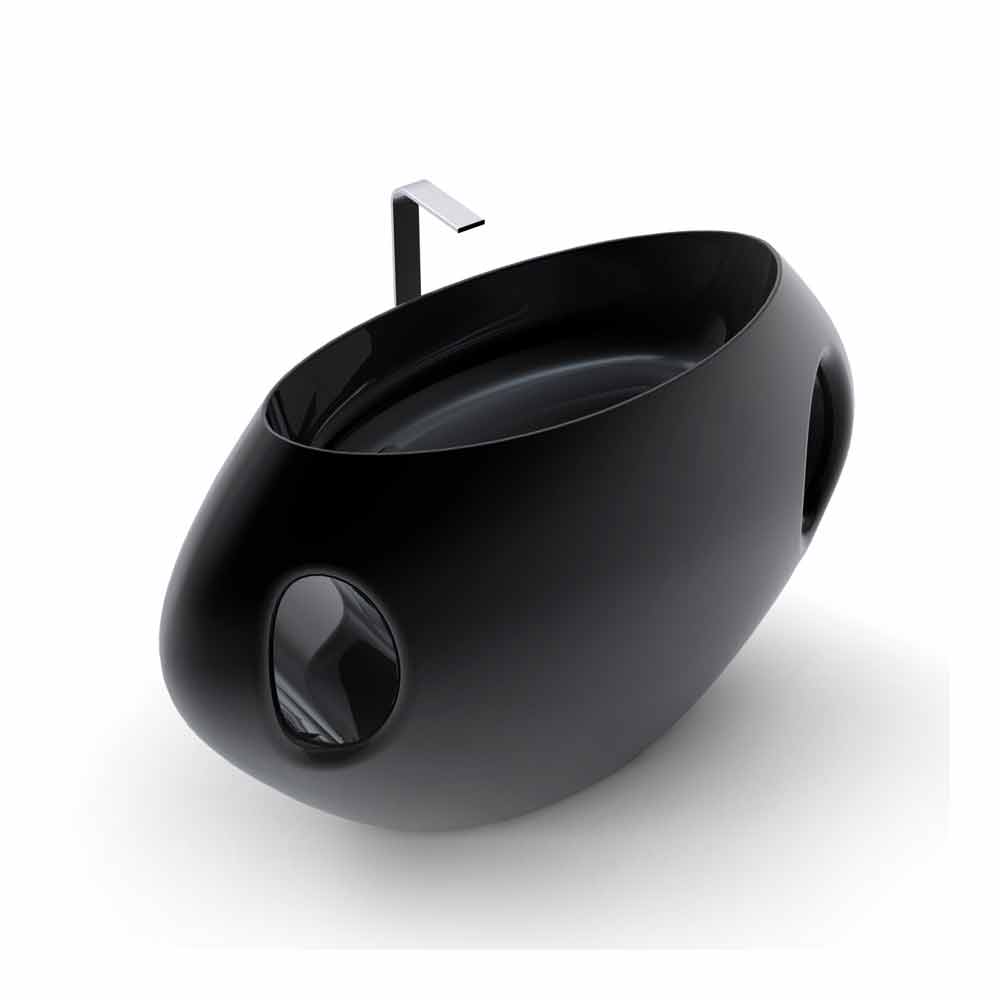 Solid Surface scenografisk håndvask; fritstående, med former inspireret af store klassiske vaser. Den er kendetegnet ved elliptiske geometriske linjer, brede og strakte, som markerer komplementet. Dens generøse former og de to ellipser i form af "håndtag" viser en profil, der leder tankerne hen på formen af en stor vase. Dens navn "Pandora" refererer faktisk til de mest berømte af de gamle fartøjer, der tilhører den græske mytologis verden, den mytiske Pandoras æske. Dens karakteristika, udover den vasiformede profil "strakt" i bredden, også en behagelig og bred kumme med vandret snit og to elliptiske dekorative slidser på fronterne, som krydser den fra side til side, og fungerer også som håndklædeholder. Sanitetsarmaturen har god ergonomi, da den er rigeligt afrundet, fås i to farvevarianter: Hvid (RAL9003) eller Sort (RAL9005)