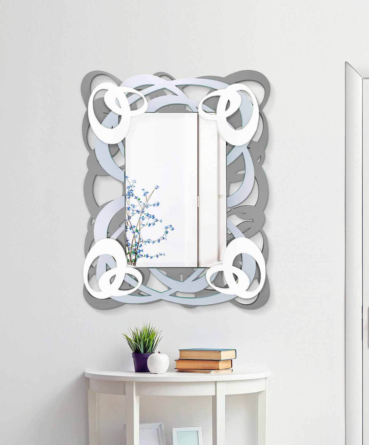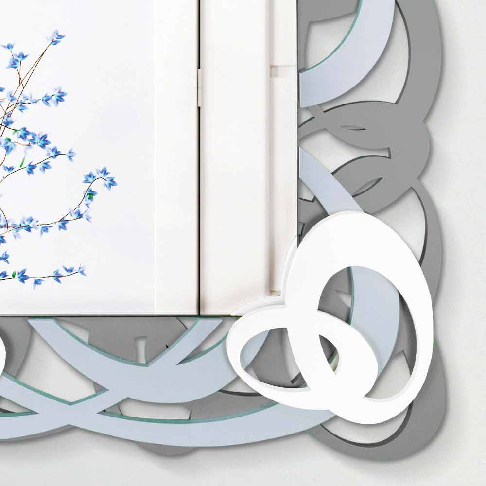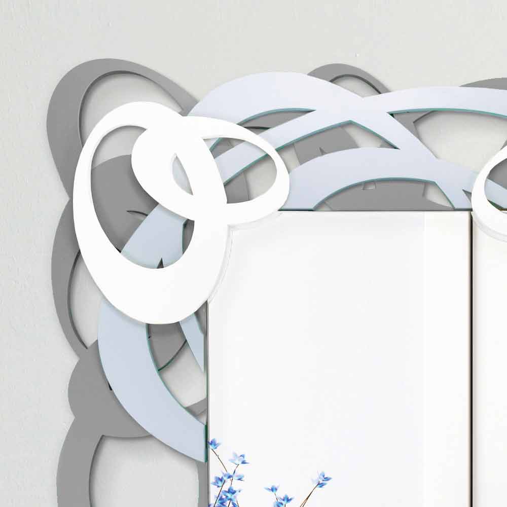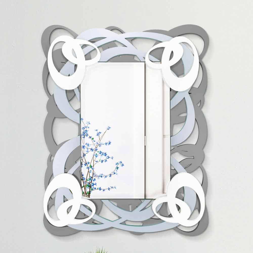 Vægspejl med moderne design i laserskåret farvet træ fremstillet i Italien.