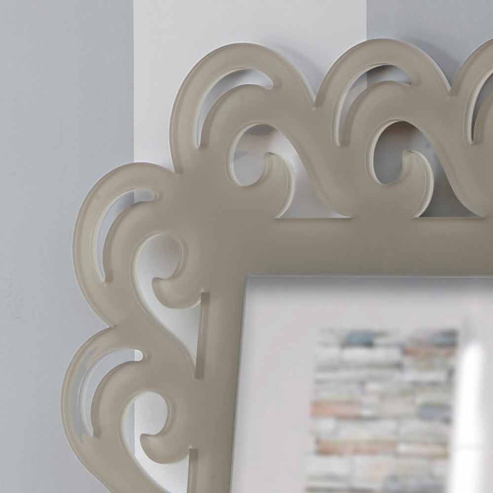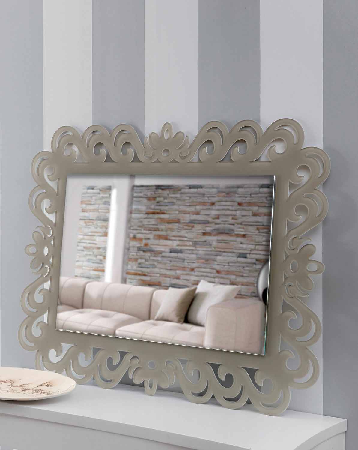 Rektangulært væg spejl med blomsterramme i duergrå plexiglas af moderne design lavet i Italien.