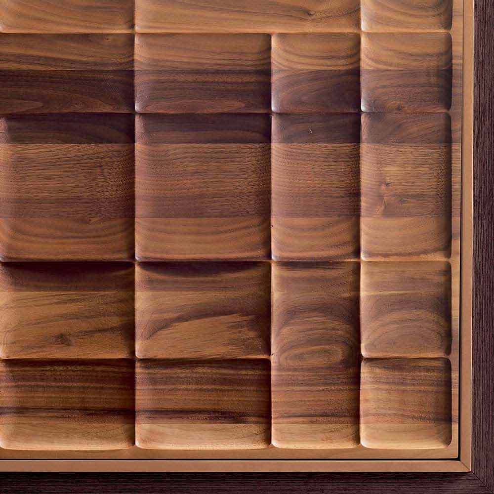 Det spil af lys og skygge skabt af den særlige behandling af dørene inkorporerer de elementer i traditionen for at gøre dem til et værk af moderne liv. Essensen valnød øger formelle balance af værdifulde skab med tre døre.