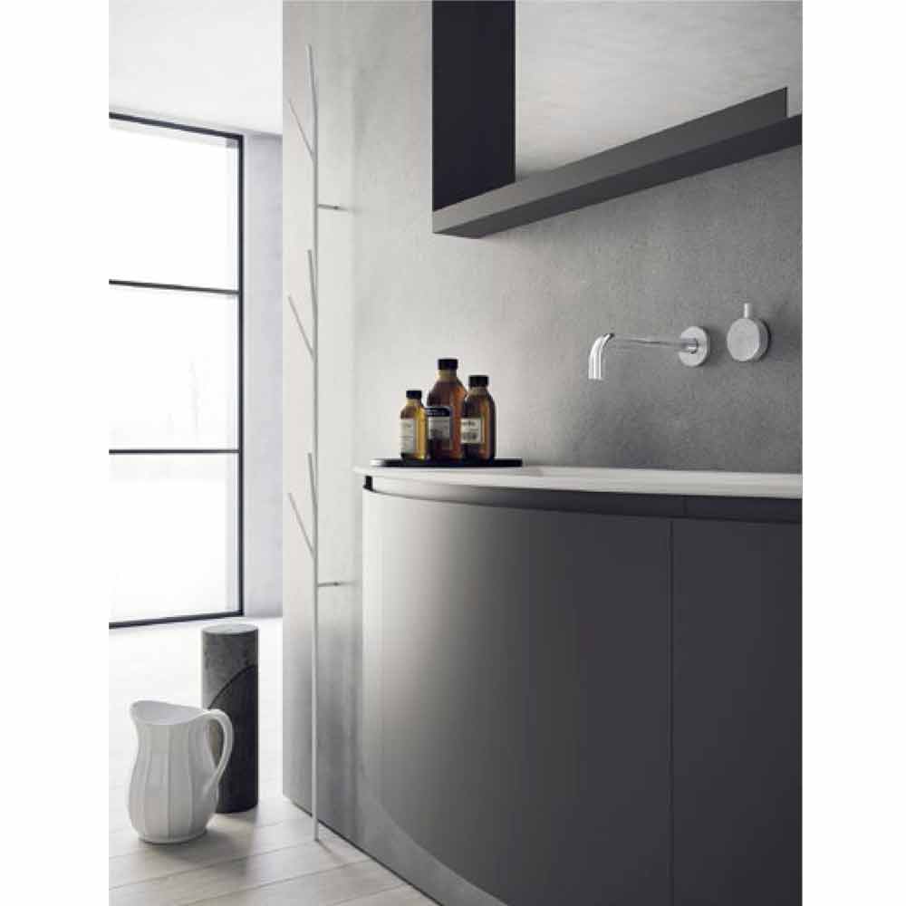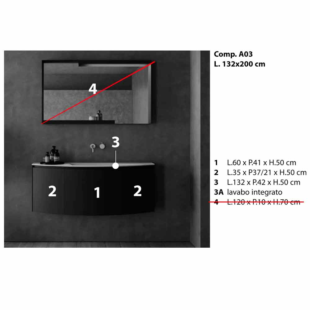 Denne kompositions ejendommelighed er givet af den indbyggede håndvask, der er kendetegnet ved to laterale sider, der forsigtigt falder ned mod bassinet.